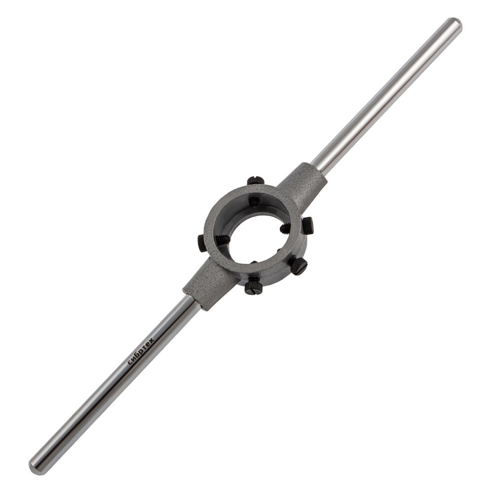Плашкодержатель Сибртех 77438 предназначен для захвата плашек диаметром 38 мм. Пригодится для ручного нарезания резьбы при проведении слесарных и монтажных работ. Плашкодержатель позволяет приложить необходимое усилие для создания ровной резьбы.