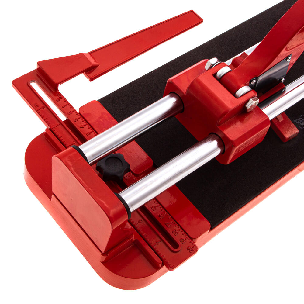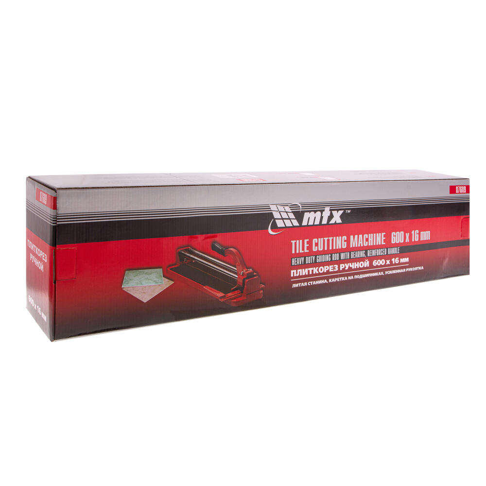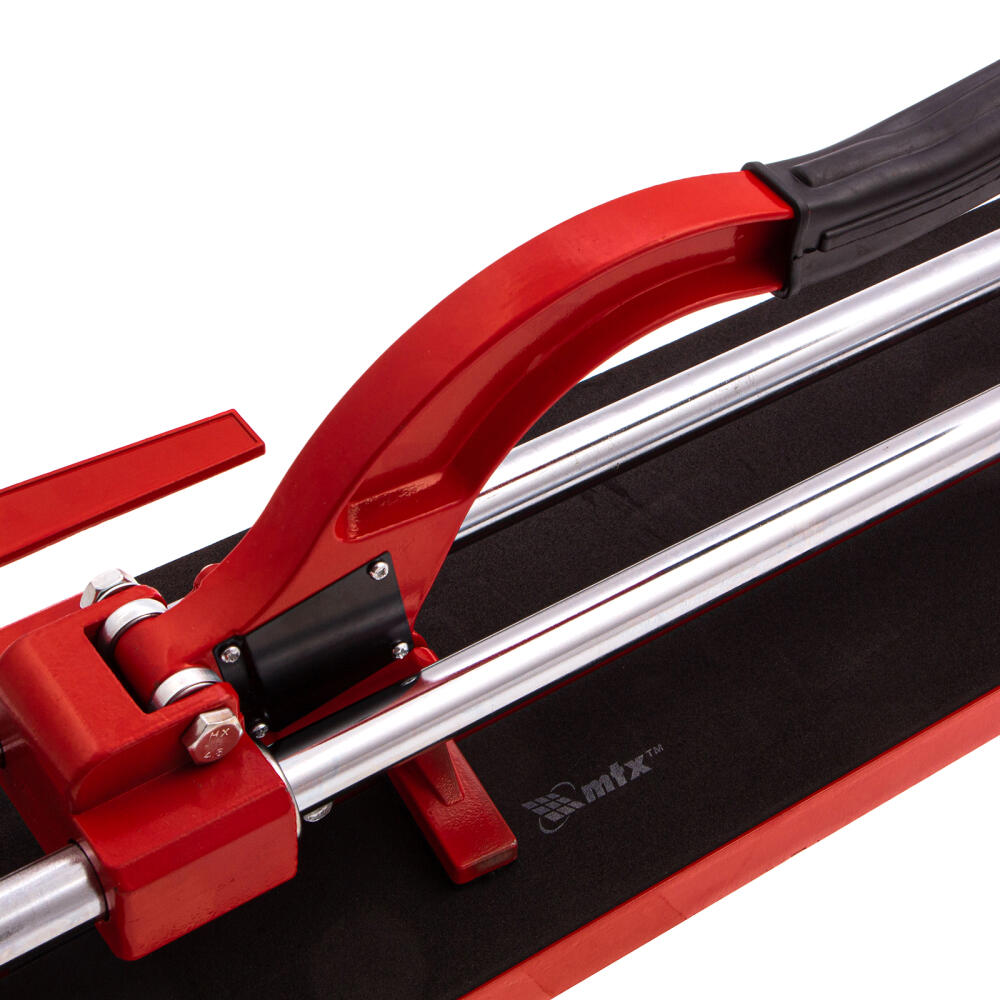 Плиткорез MTX 87609 с литой станиной, кареткой на подшипниках и усиленной рукояткой, используется для резки кафельной плитки размером до 600 х 16 мм. Ходовая каретка представляет собой массивный цельнолитой закрытый корпус, внутри которого размещаются цилиндрические шариковые подшипники, благодаря которым каретка перемещается по направляющим свободно даже при их загрязнении. Отсутствие люфтов в каретке позволяет выполнять рез максимально точно. Инструмент будет полезен мастерам в ходе бытовых облицовочных работ.