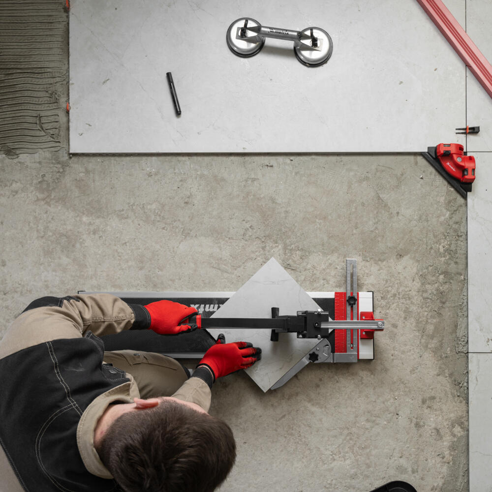 Рельсовый плиткорез MTX 87689 способен резать плитку длиной до 700 мм и толщиной до 16 мм для придания ей необходимых размеров. Мощный разделитель справляется с резкой не только керамической, но и керамогранитной плитки. Продуманная конструкция позволяет производить разлом в любой точке поверхности плитки. Инструмент используется во время проведения облицовочных работ.