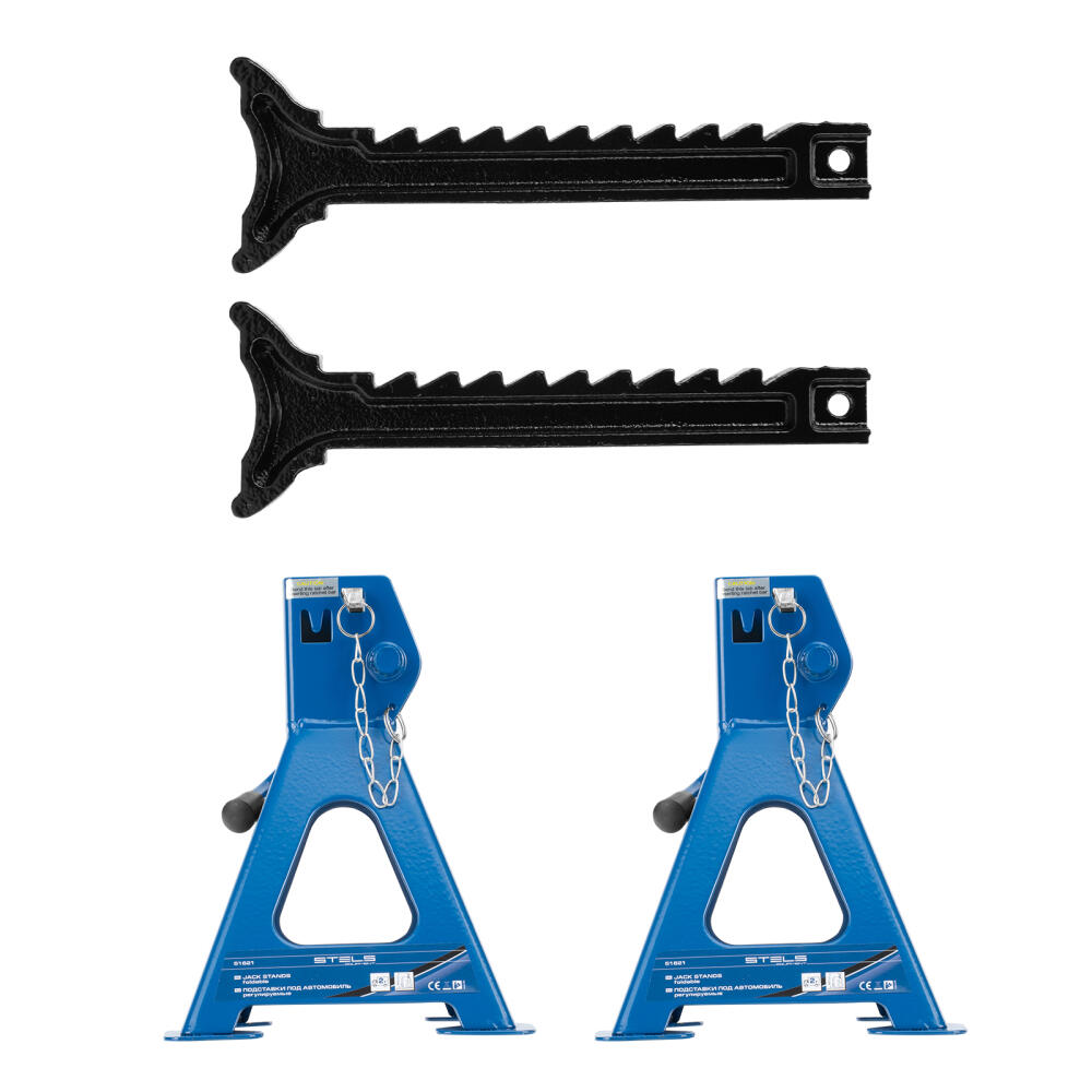Регулируемые подставки под автомобиль Stels 51621 грузоподъемностью 2 т, с высотой подъема 280-420 мм, 2 шт. в комплекте, используются в качестве дополнительной поддержки во время ремонта автотранспорта. Подставки удерживают автомобиль на необходимой высоте при помощи регулируемых штоков с зубчатым механизмом фиксации. Каждая стойка снабжена страховочным штифтом, что исключает риск случайного опускания штока. Подставки будут полезны для профессионального и самостоятельного авторемонта.