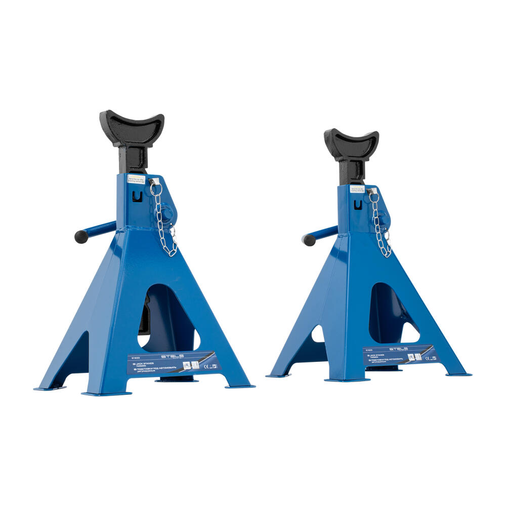 Регулируемые подставки под автомобиль Stels 51633 грузоподъемностью 6 т, с высотой подъема 385-600 мм, 2 шт. в комплекте, используются в качестве дополнительной поддержки во время ремонта автотранспорта. Подставки удерживают автомобиль на необходимой высоте при помощи регулируемых штоков с зубчатым механизмом фиксации. Каждая стойка снабжена страховочным штифтом, что исключает риск случайного опускания штока. Подставки будут полезны для профессионального и самостоятельного авторемонта.