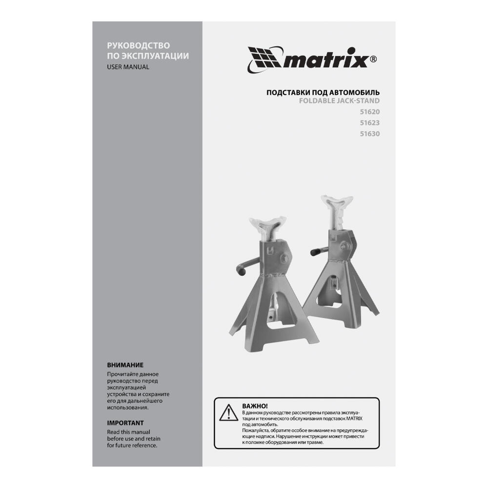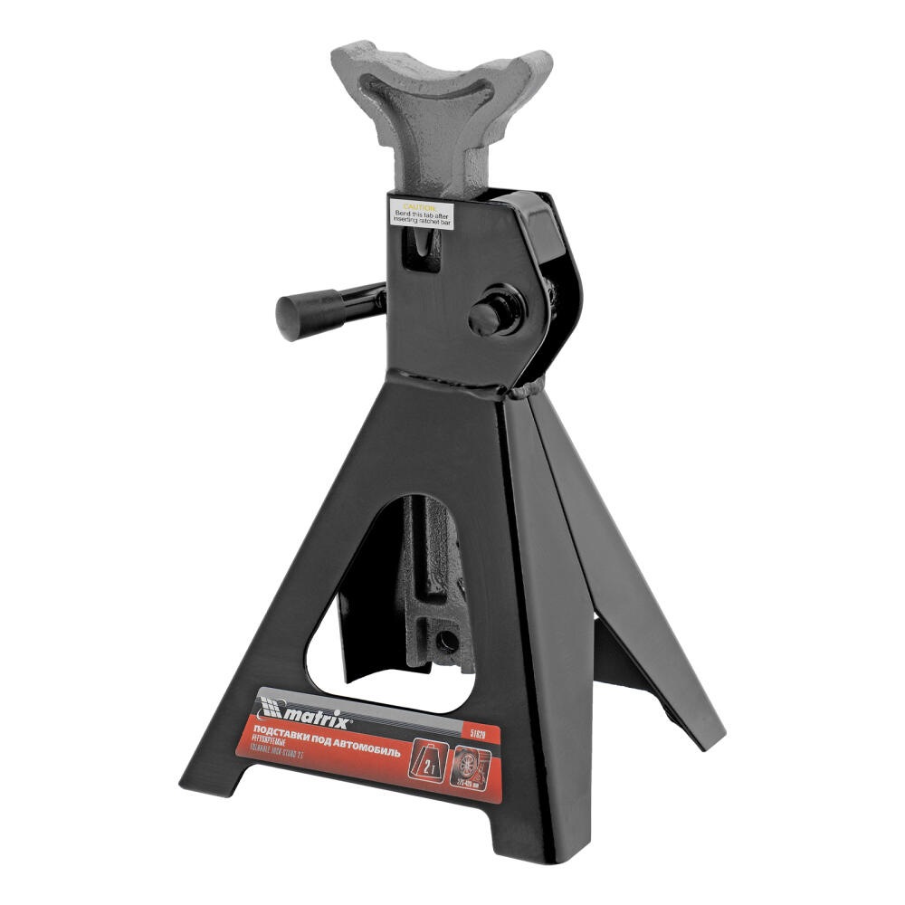 Регулируемые подставки под автомобиль Matrix 51620 с несущей способностью 2 т, 2 шт. в комплекте, удерживают груз на высоте 275-420 мм. Их используют в качестве средства дополнительной фиксации и страховки легкового автомобиля, поднятого на подъемнике или домкрате. Конструкцией предусмотрен зубчатый механизм, надежно удерживающий шток в выдвинутом положении. Подставки пригодятся в гараже или автосервисе во время проведения ремонтных работ.