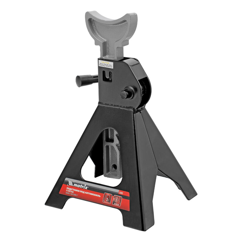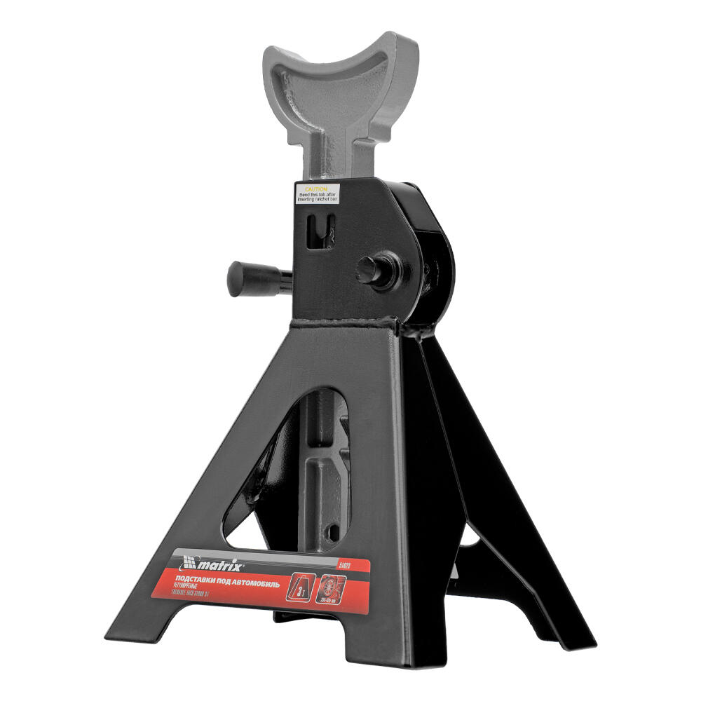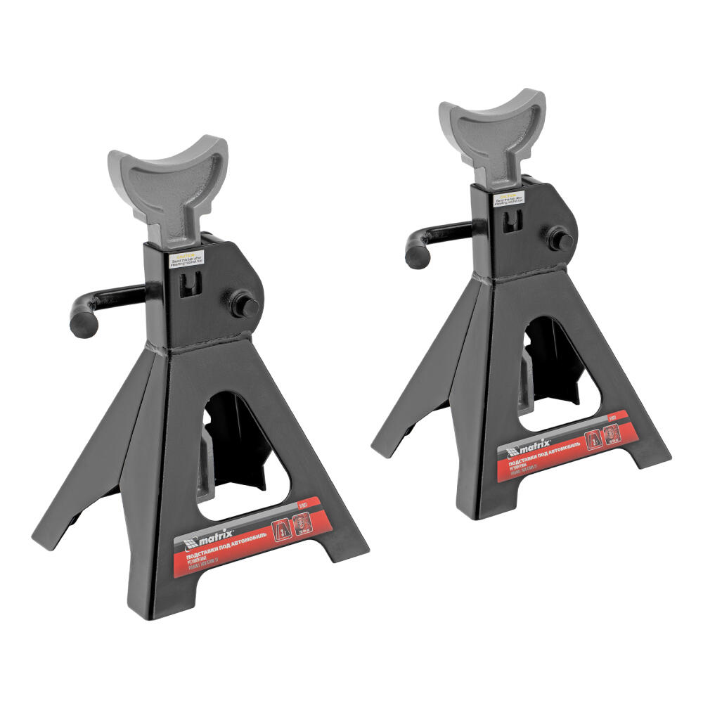 Регулируемые подставки под автомобиль Matrix 51623 с несущей способностью 3 т, 2 шт. в комплекте, удерживают груз на высоте 295-425 мм. Их используют в качестве средства дополнительной фиксации и страховки легкового автомобиля, поднятого на подъемнике или домкрате. Конструкцией предусмотрен зубчатый механизм, надежно удерживающий шток в выдвинутом положении. Подставки пригодятся в гараже или автосервисе во время проведения ремонтных работ.