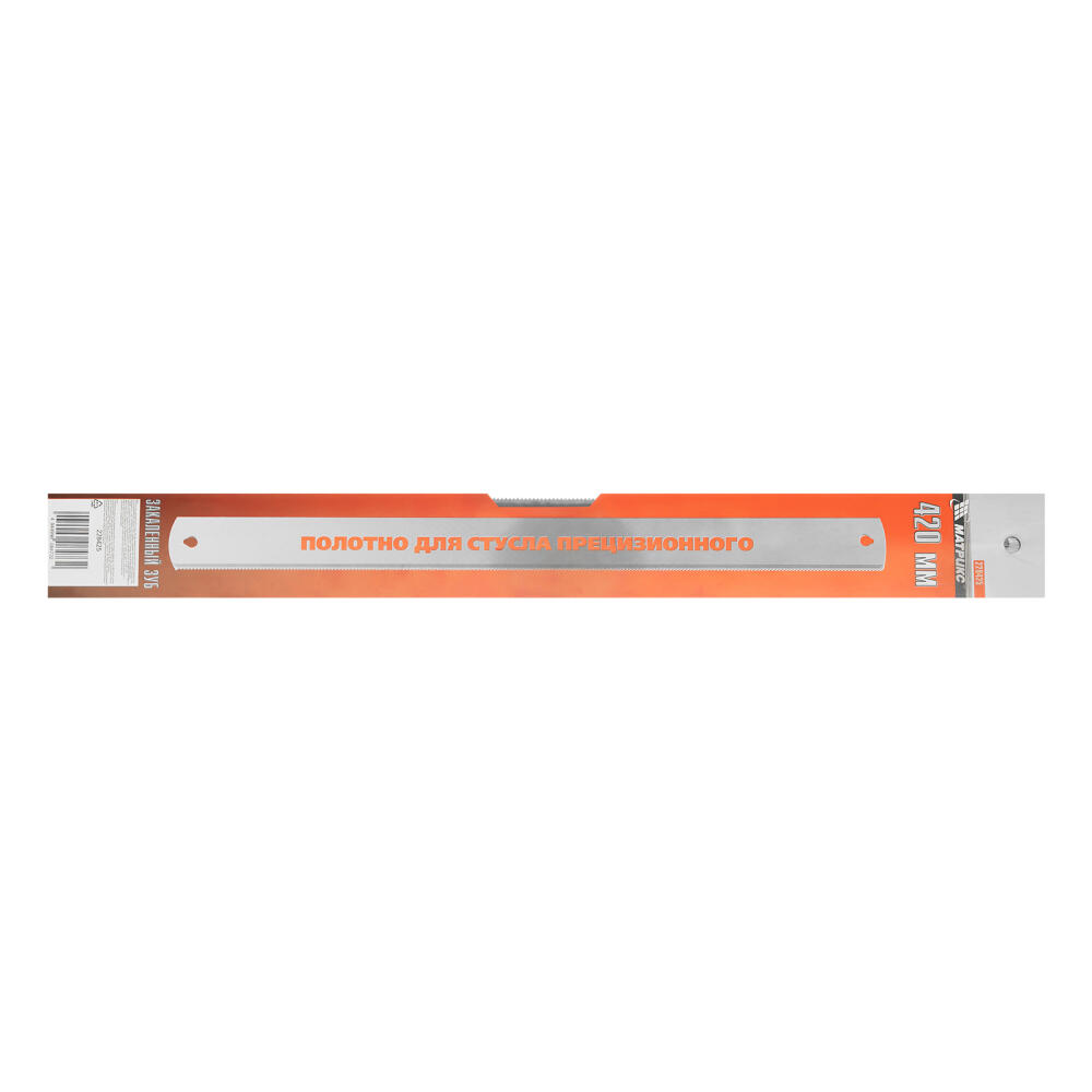 Полотно Матрикс 228425 длиной 420 мм, с закаленным зубом, — сменный режущий элемент для прецизионного стусла. Предназначено для торцевой обработки деталей из дерева или пластика. Мелкий зуб с шагом 1,8 мм, или 14 TPI, обеспечивает чистый и ровный рез. Полотно применяется во время проведения профессиональных столярных работ.