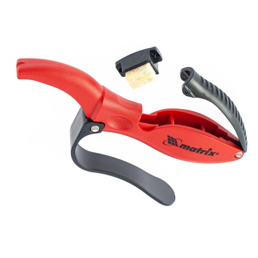 Приспособление для затачивания Matrix 79102 используется для восстановления режущей способности лезвий ножей, ножниц и секаторов. Затачивающий элемент состоит из двух резцов, изготовленных из твердого сплава ВК-8 и отличающихся повышенной прочностью и износостойкостью. Прочный пластиковый корпус рассчитан на длительное применение. Для использования приспособления не требуются специальные навыки, поэтому оно подходит для бытового применения.