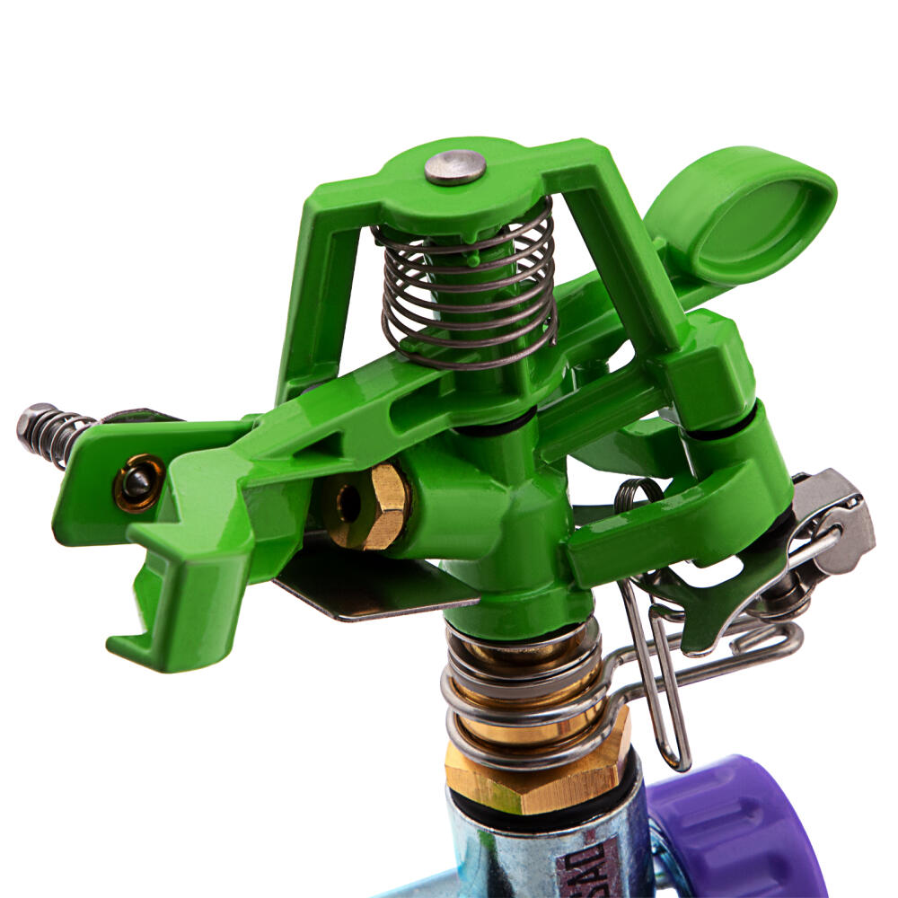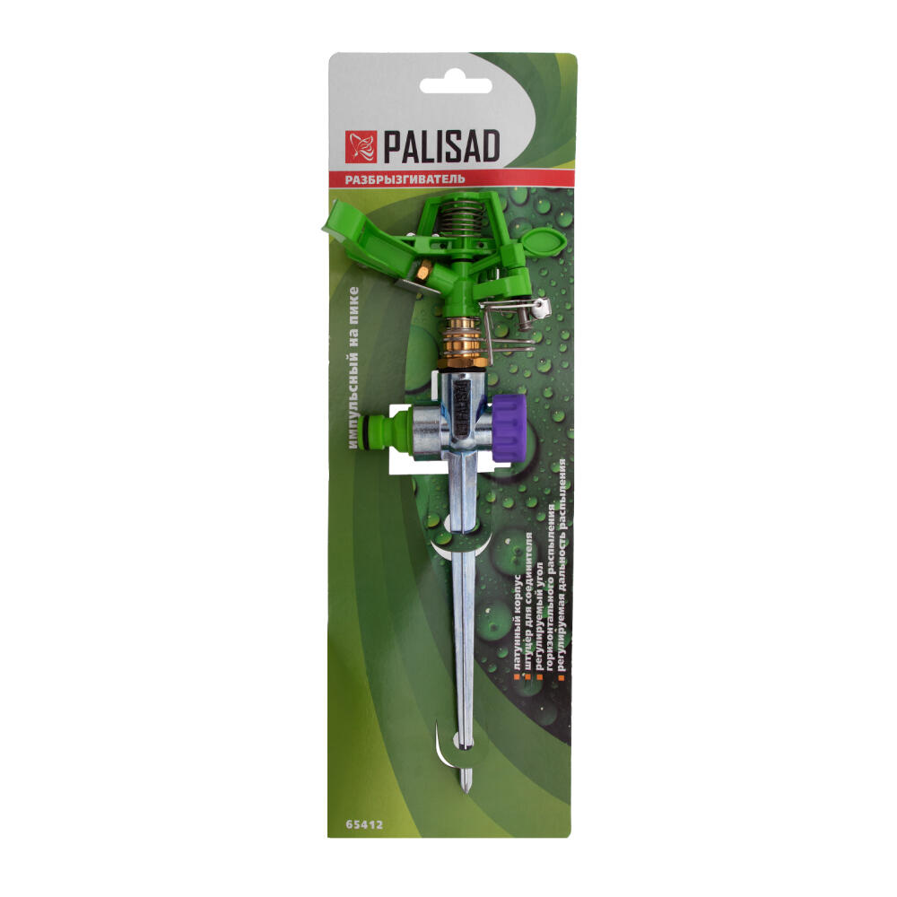 Импульсный латунный разбрызгиватель Palisad 65412 с регулировкой угла горизонтального распыления и дальностью разбрызгивания до 26 м, предназначен для стационарного полива на участке площадью до 500 кв. м. Изменяя угол струи и дальность разбрызгивания, можно задать конкретный сектор орошения. Устройство пригодится для ухода за зелеными насаждениями на даче и прочих озелененных территориях.