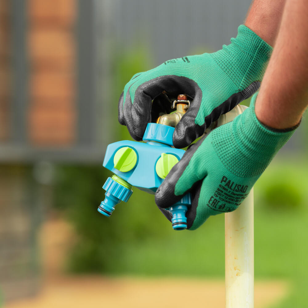 Двухканальный пластиковый разветвитель Palisad LUXE 65786 с внутренней резьбой позволяет подключить 2 водоразборные линии к крану или отводу с внешней резьбой 3/4"-1" дюйма. Будет полезен при монтаже поливочной системы на приусадебном участке.
