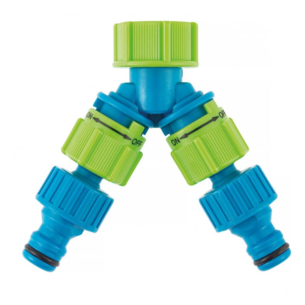 Двухканальный пластиковый разветвитель Palisad LUXE 66427 позволяет подключить 2 водоразборные линии к крану или отводу с внешней резьбой 3/4". Будет полезен при монтаже поливочной системы на приусадебном участке.