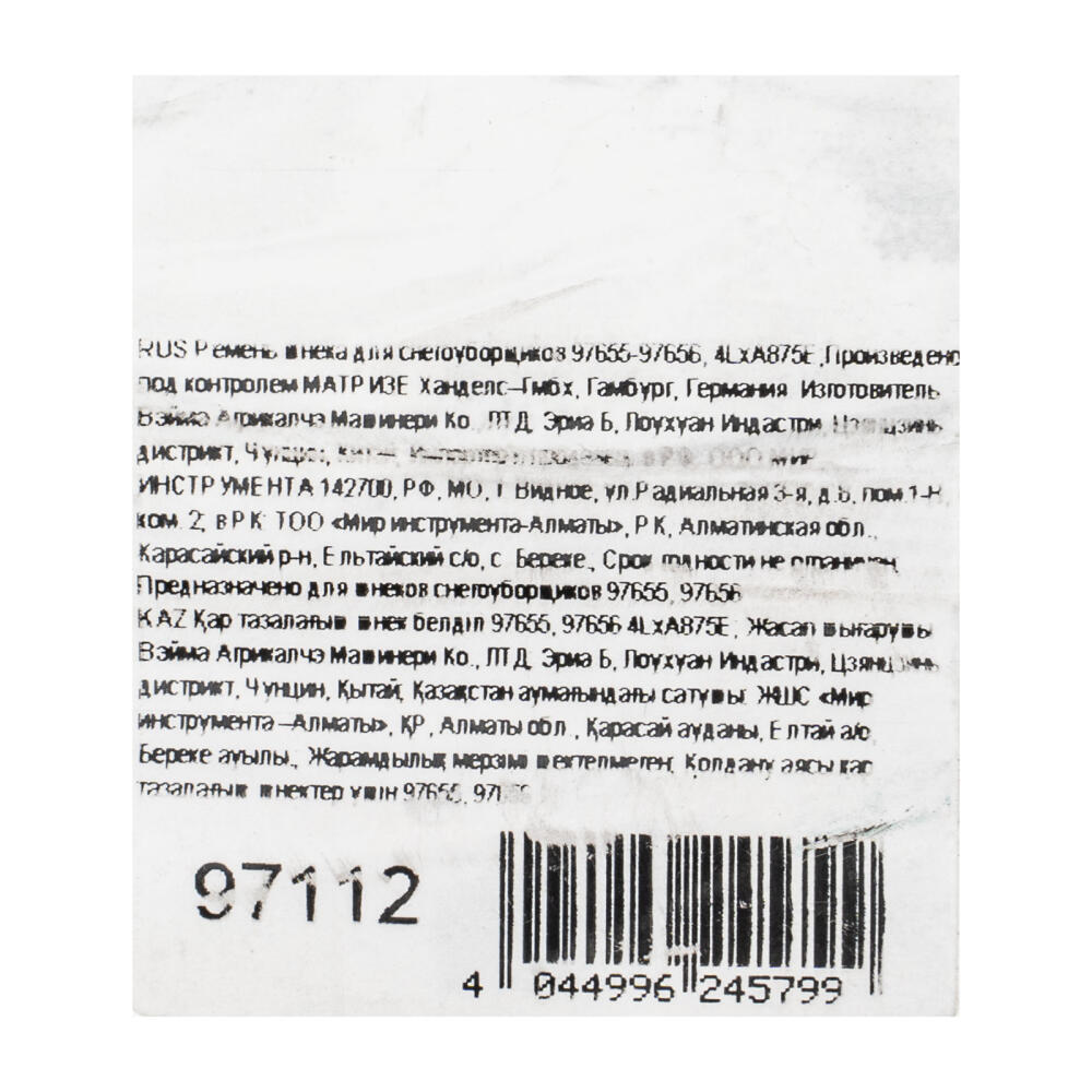 Клиновой ремень привода шнека 4LхA875E 97112 используется в качестве запасного аксессуара для снегоуборочных машин SBL 711D PRO 97655 и SBL 711DT PRO 97656. Предназначен для передачи крутящего момента, позволяет восстановить работоспособность техники после выхода из строя старого ремня.