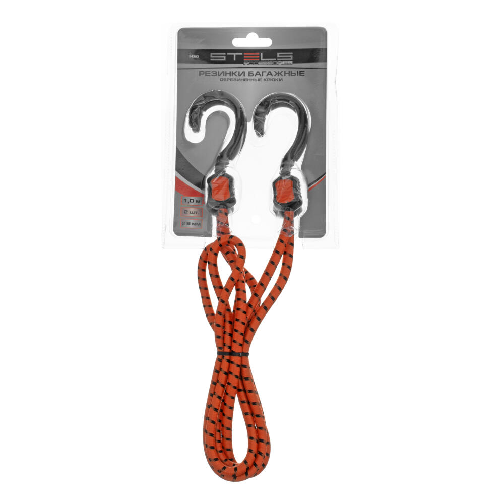 Багажные резинки Stels 54363, 2 шт. длиной 1000 мм, с обрезиненными крюками, используются для закрепления багажа в прицепе или багажнике автомобиля. Прочные и эластичные жгуты диаметром 8 мм из белой резины надежно фиксируют предметы, в том числе габаритные, и удерживают их на месте во время маневров. Резинки будут полезны автомобилистам при транспортировке грузов.
