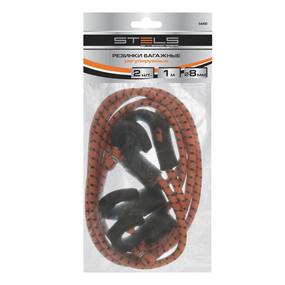 Багажные резинки Stels 54400 круглого сечения, 2 шт. диаметром 8 мм, с регулировкой длины, используются во время грузоперевозок. При помощи крюков надежно фиксируют предметы на решетчатых поддонах, например, автомобильных багажниках.