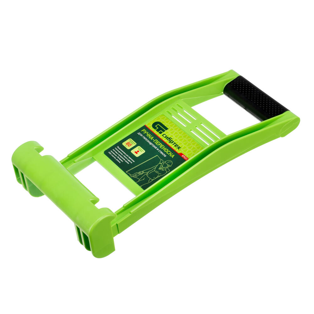 Ручка-переноска для гипсокартона и стекла Сибртех 87531 используется для перемещения вручную крупногабаритных гипсокартонных листов, фанеры и других листовых материалов в одиночку. Будет полезна во время строительных, ремонтных и погрузо-разгрузочных работ.