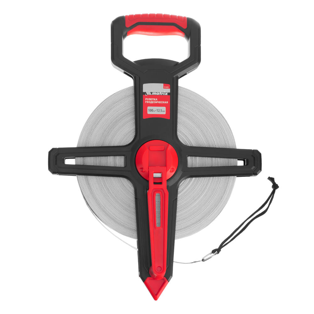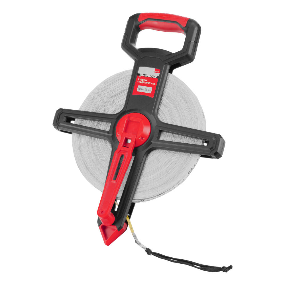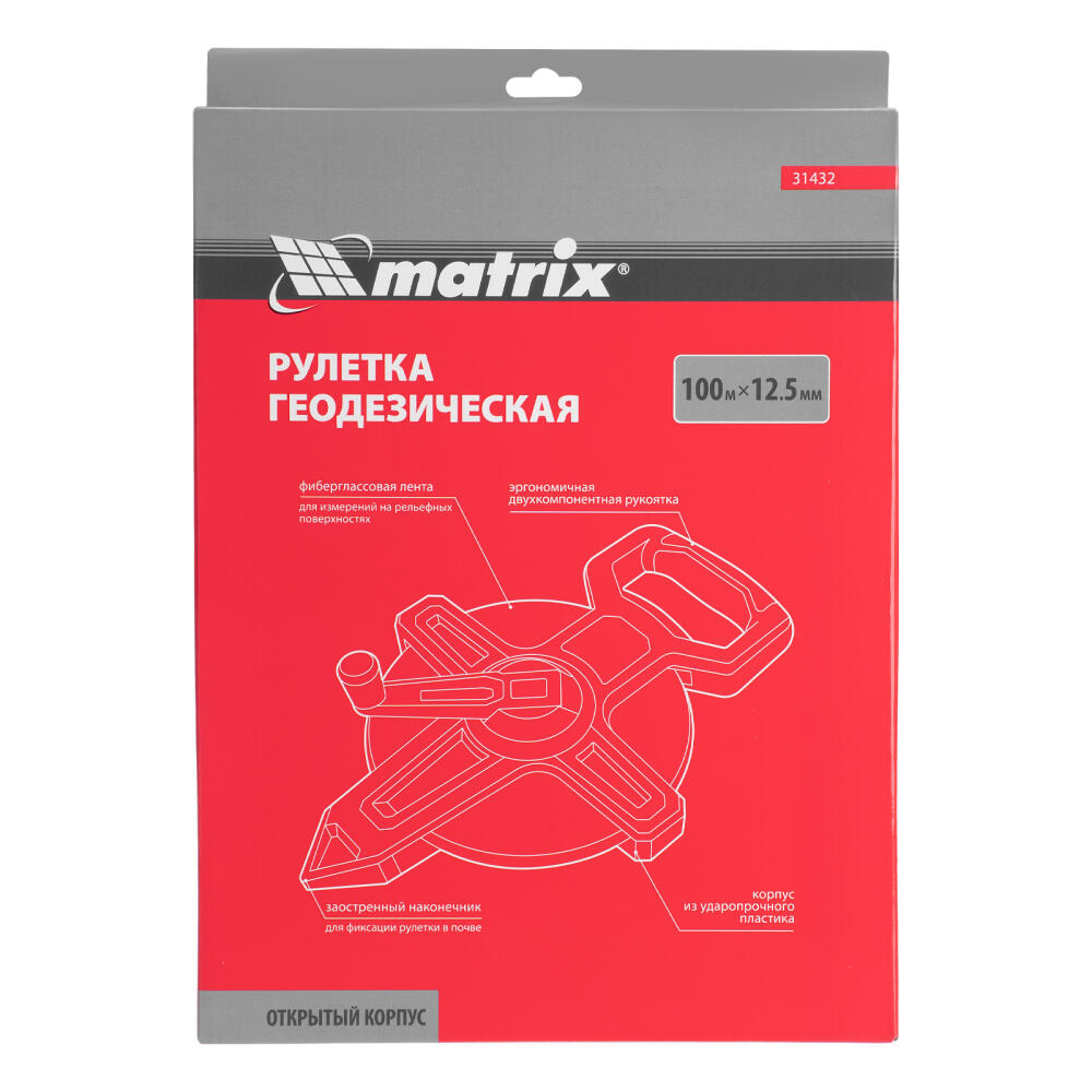 Рулетка геодезическая 100 м х 12,5 мм, открытый корпус, фиберглассовая лента Matrix