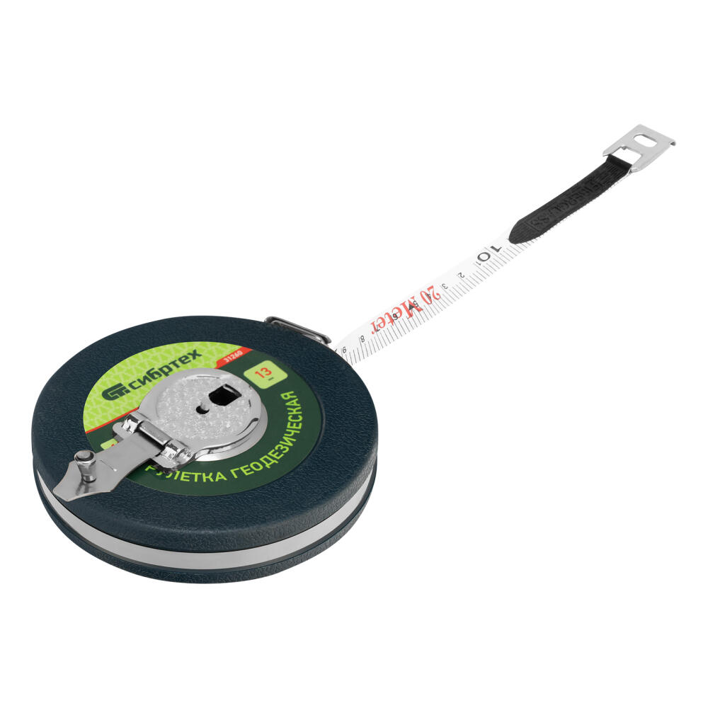 Геодезическая рулетка Сибртех 31261 с измерительным полотном длиной 20 м и шириной 13 мм, в закрытом корпусе, с фибергласовой лентой, — измерительный инструмент для определения расстояний и проведения замеров различных объектов. Рулетка пригодится при выполнении строительных и ремонтных работ, обмеров садовых участков, а также при формировании ландшафтов.