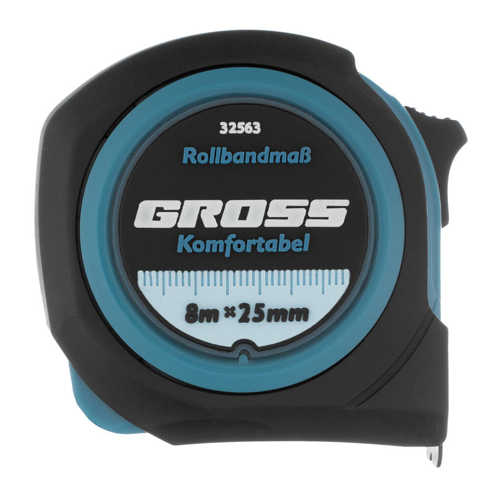Рулетка Gross «Komfortabel» 32563 в обрезиненном корпусе с лентой 8 м х 25 мм — это удобный карманный инструмент, необходимый при проведении ремонтных и строительных работ. С ее помощью можно провести линейные измерения ровных поверхностей, различных заготовок, материалов, конструкций и т.д.