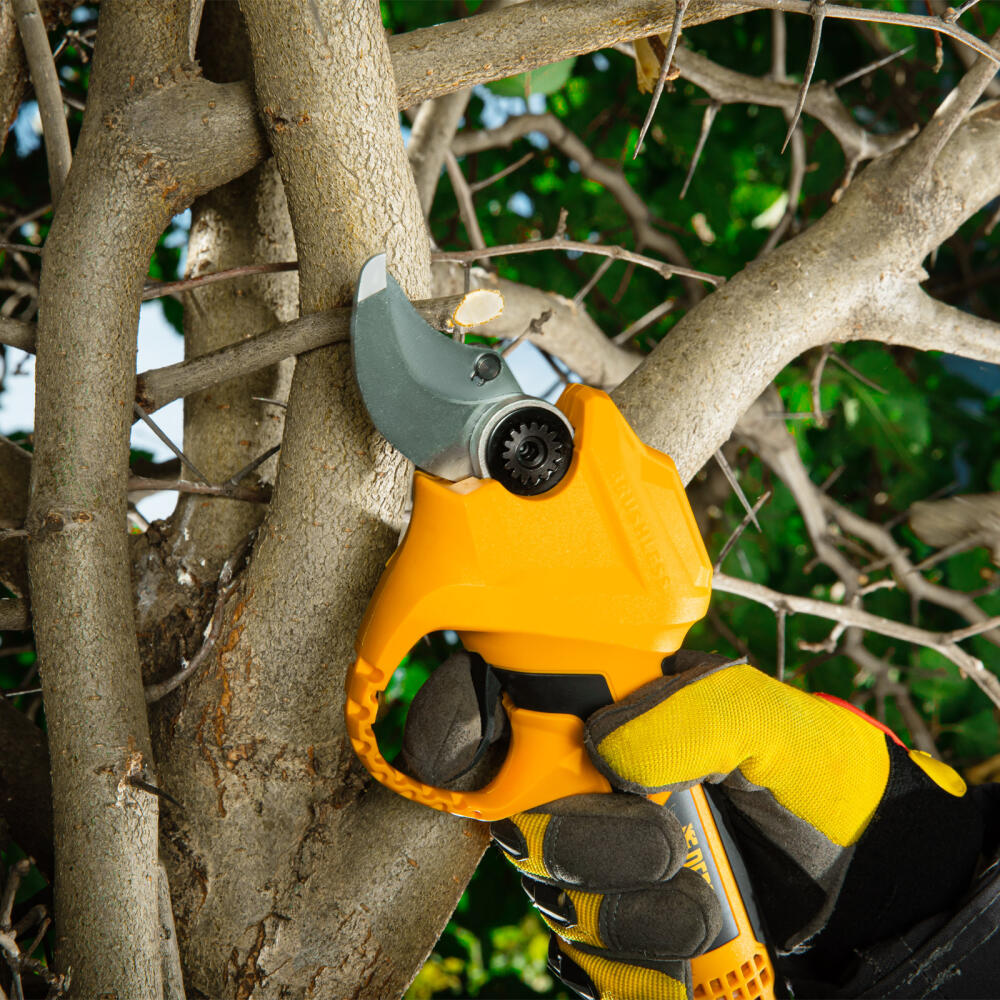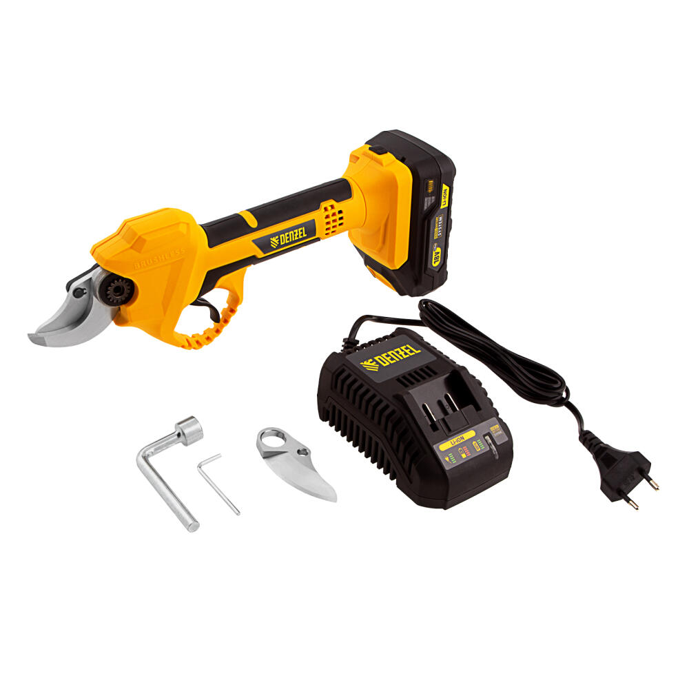 Аккумуляторный секатор Denzel CP-30 с батареей 18В Li-Ion предназначен для срезания ветвей толщиной до 30 мм. Станет незаменимым помощником для владельцев загородных домов, дач и плодовых питомников. Компактный бесщеточный электродвигатель обеспечивает эффективную работу инструмента. Секатор работает от аккумулятора, поэтому будет полезен при работе в труднодоступных местах и отдаленных участках сада.