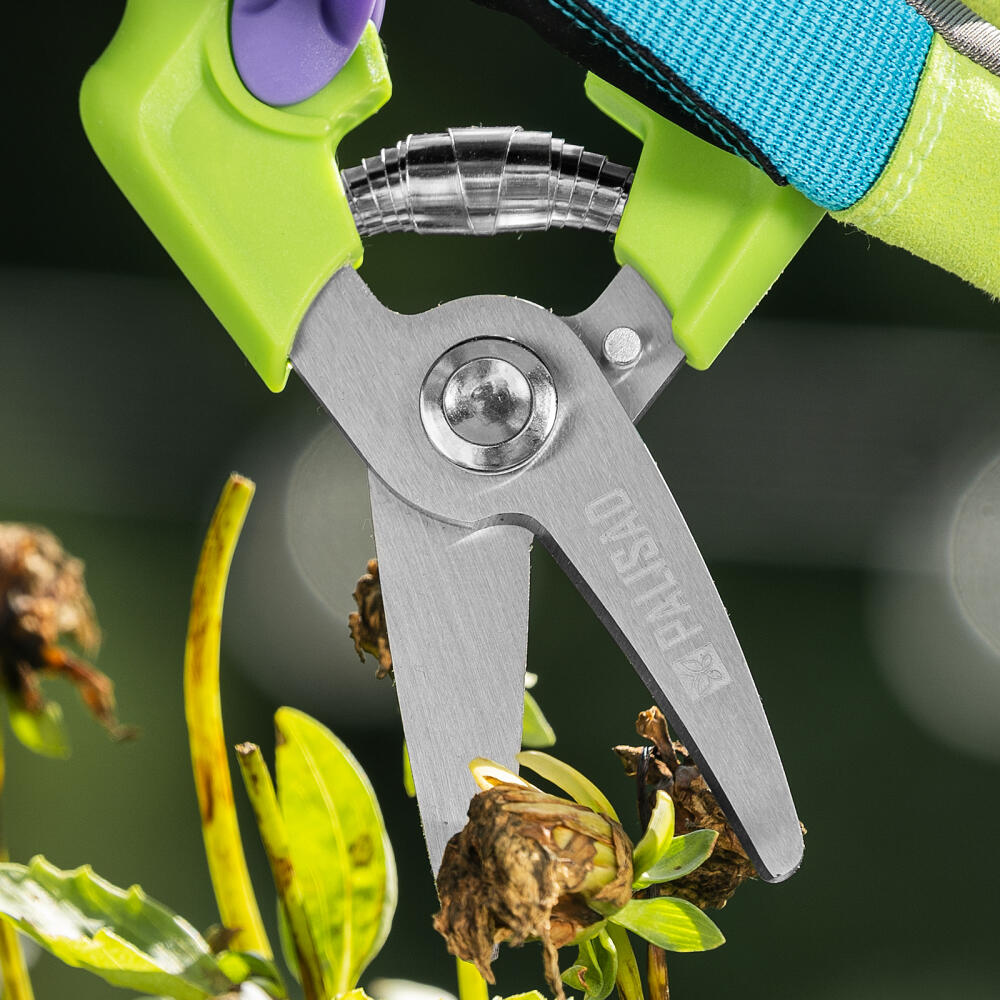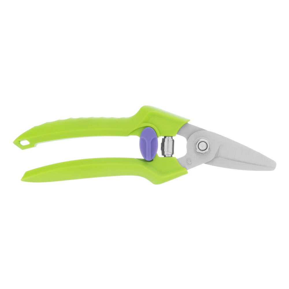 Цветочный секатор Palisad 60455 длиной 190 мм, с пластиковыми рукоятками, используется для обрезки цветов и молодых побегов толщиной до 15 мм. Применяется при выполнении хозяйственных работ: разрезании подвязочного материала, ткани и картона, а также решении других задач. Подходит для создания бонсай и топиарных фигур. Инструмент будет полезен для ухода за садом, пригодится также в быту.