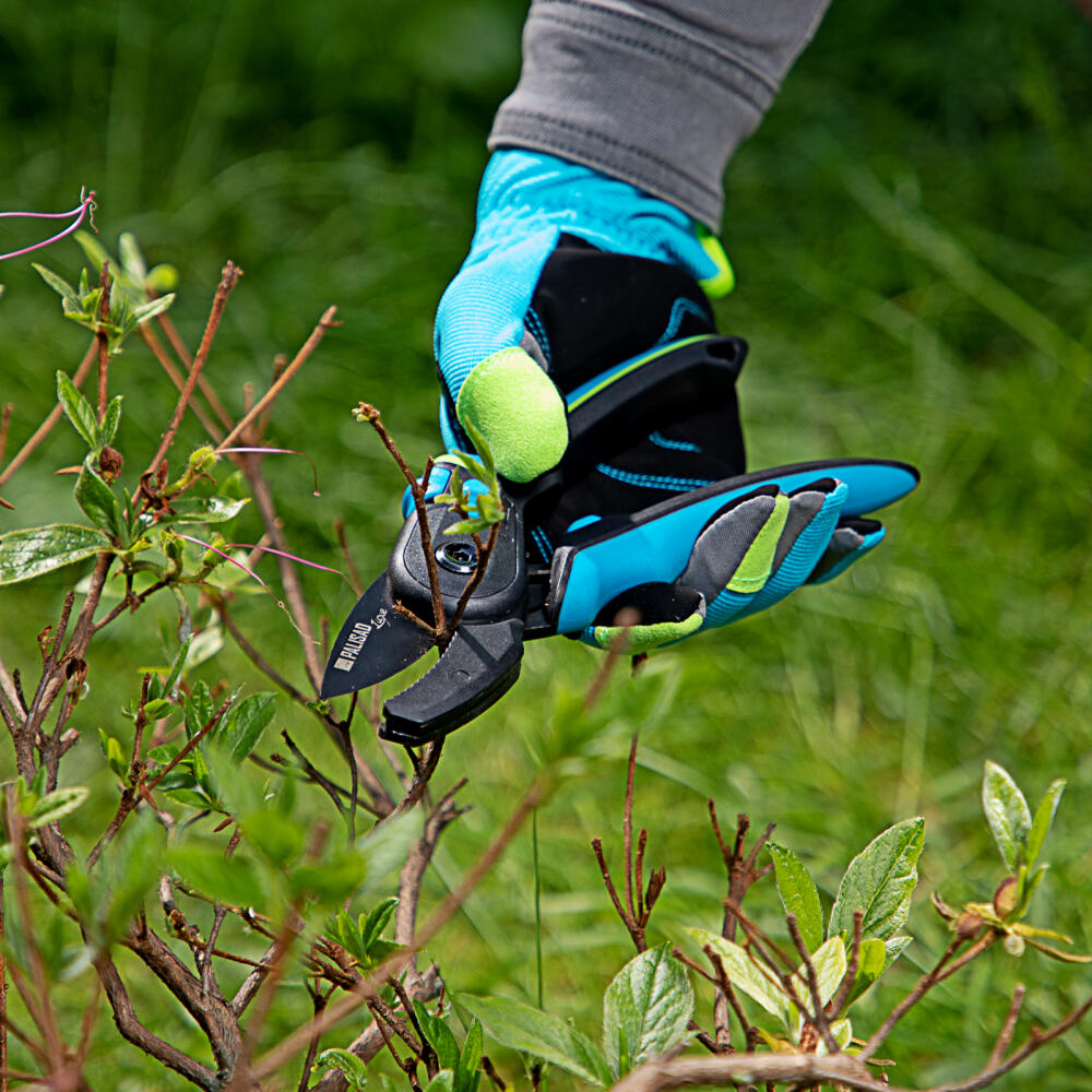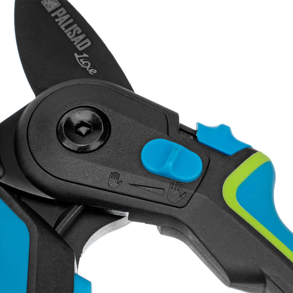 Секатор с наковальней Palisad LUXE 604805 длиной 220 мм, с регулировкой захвата и трехкомпонентными рукоятками, предназначен для обрезки сухих и увядших веток толщиной до 24 мм. Лезвие с тефлоновым покрытием и прецизионной заточкой отсекает ветку быстро и максимально щадяще для растения. Увеличенный шарнир, усиливающий сжатие на 10%, экономит силы пользователя во время длительной работы. Плотность примыкания лезвий можно отрегулировать вращением винта. Инструмент будет полезен для ухода за растениями на даче и в саду.
