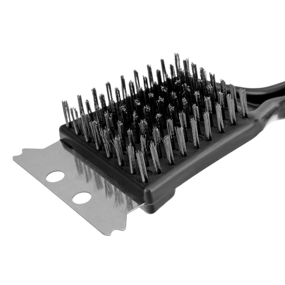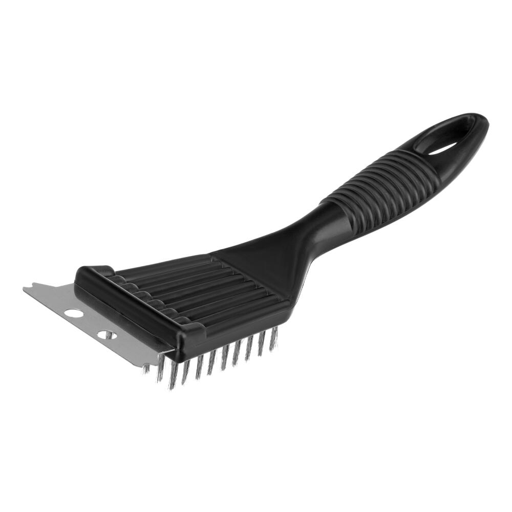 Щетка 2 в 1 Palisad Camping 69650 длиной 20 см, со скребком, предназначена для чистки гриля, барбекю и шампуров после приготовления пищи. Стальная щетина эффективно удаляет частички продуктов, скребок счищает сильный нагар. Щетка пригодится на даче или пикнике.