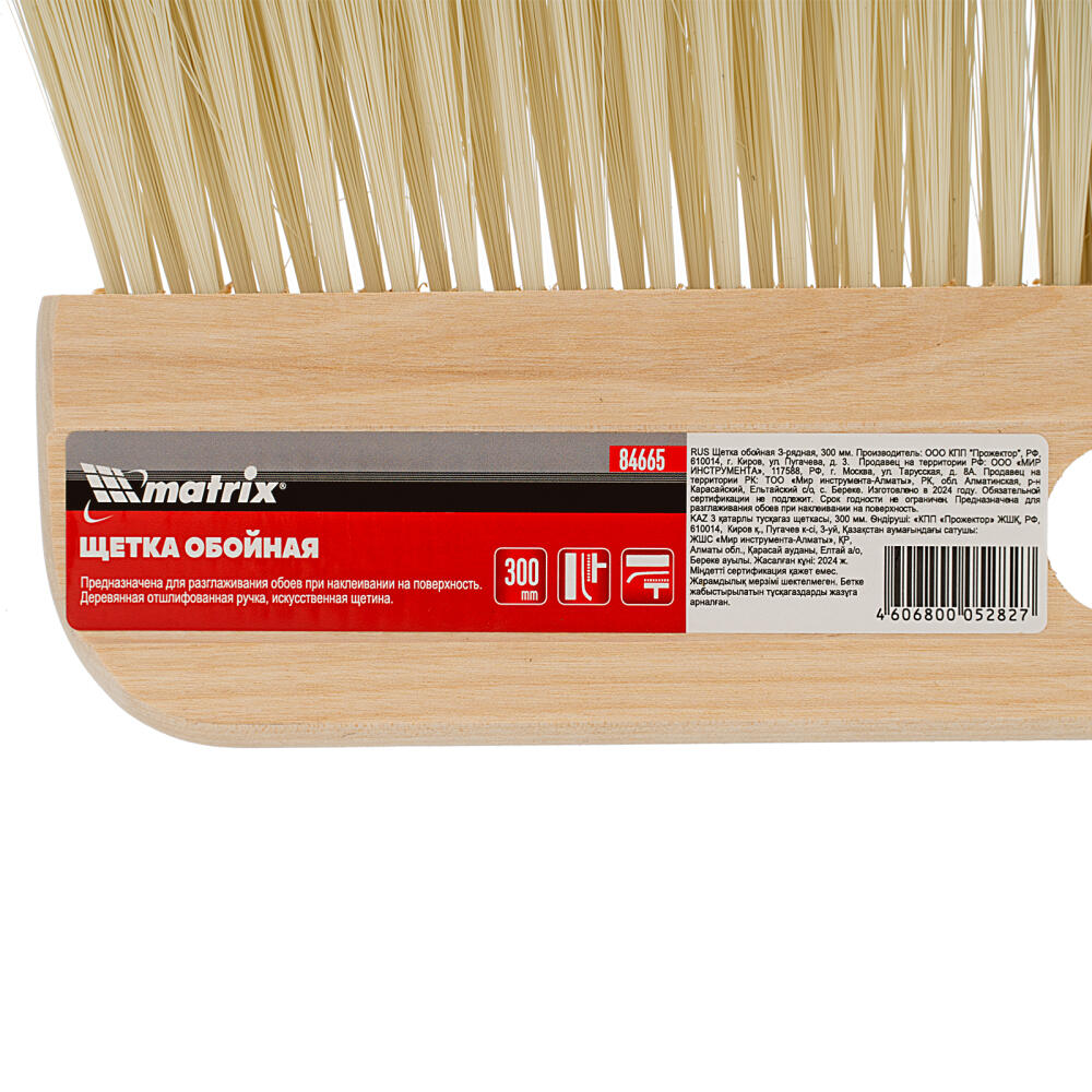 3-рядная обойная щетка MTX 84665 шириной 300 мм используется при проведении отделочных работ. Предназначена для разглаживания обоев на стене, а также может применяться для нанесения клея на полотна.