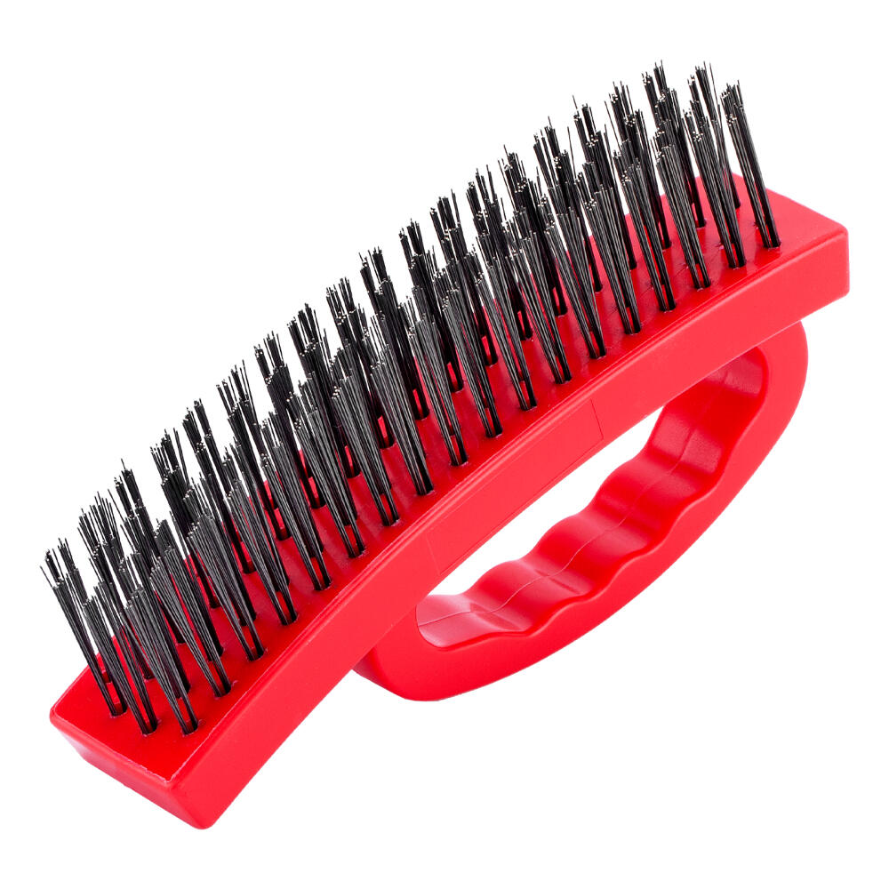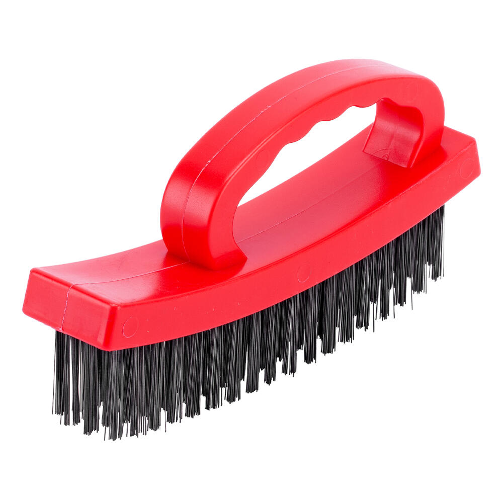 Плоская зачистная 4-рядная щетка Matrix 74818, пластиковая, с рукояткой, — ручной инструмент для очистки поверхностей от старых лакокрасочных покрытий, загрязнений, ржавчины. Подходит для обработки металла, древесины, пластика и других материалов. Плотные пучки расположены в 4 ряда, что обеспечивает высокую эффективность воздействия. У щетки имеется эргономичная рукоятка с подпальцевыми выемками, что повышает комфортность работы. Щетка пригодится во время строительства и ремонта, а также будет полезна дома, на даче или в гараже.