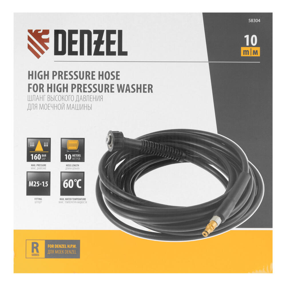 Шланг высокого давления Denzel 58304 длиной 10 м рассчитан на давление до 16 МПа. Увеличенная длина шланга позволяет свободно перемещаться по рабочей зоне, а также работать в труднодоступных местах. Совместим с моечными машинами торговой марки Denzel серии R, артикулы 58232, 58233, 58234, 58236.