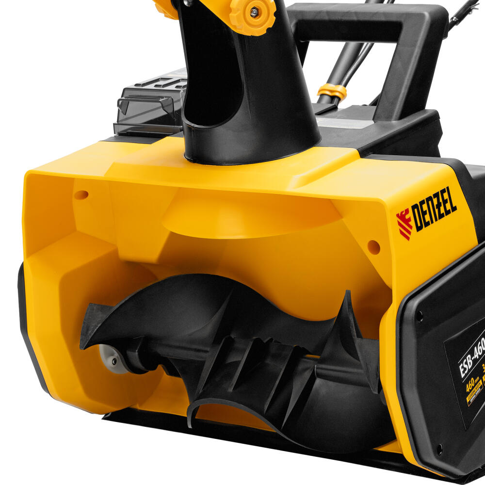 Аккумуляторная снегоуборочная машина Denzel ESB-460-0 97636 предназначена для очищения ровных поверхностей от снега, поможет расчистить дорожки, тротуары, придомовую территорию, парковку. Ширина захвата составляет 460 мм, что позволяет быстрее справляться с уборкой. Работает от 2 аккумуляторов Li-Ion с рабочим напряжением 18 В и емкостью 4 А·ч каждый.