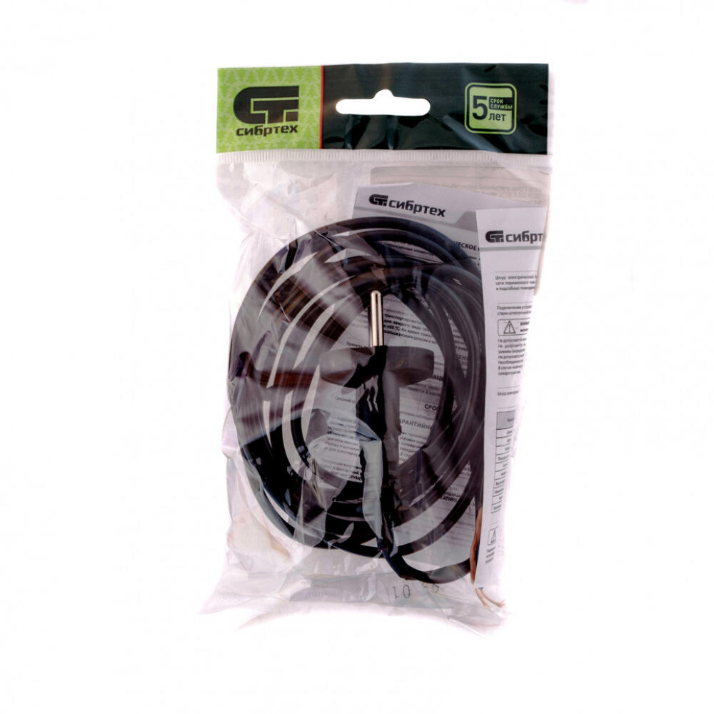 Электрический соединительный шнур Сибртех 96016 черного цвета, длиной 2,2 м, имеет класс воспламеняемости V-1 и позволяет подключить к источнику энергии настольную лампу и другие электроприборы мощностью до 120 Вт. Предназначен для замены вышедшего из строя провода, подходит для бытового применения.