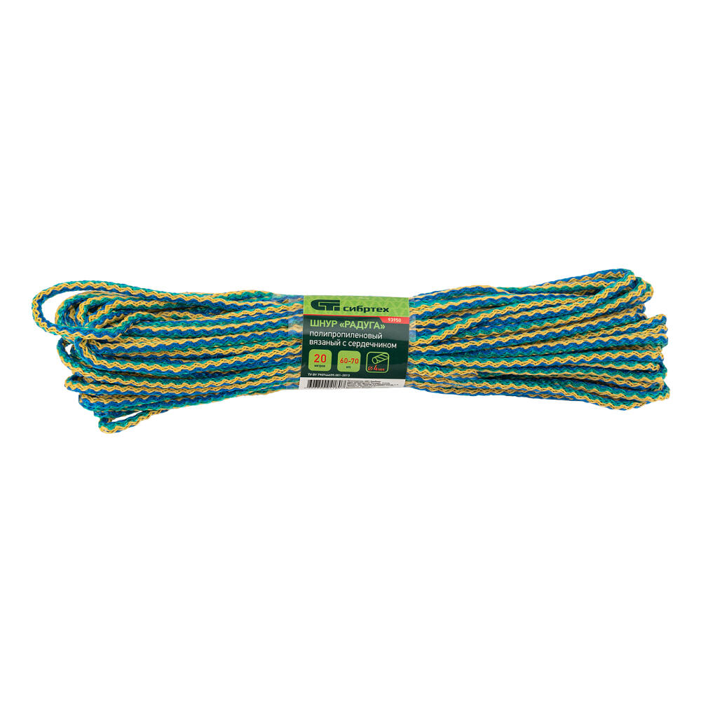 Вязаный полипропиленовый шнур с сердечником Сибртех «Радуга» 93950 белого цвета, диаметром 4 мм, длиной 20 м, будет полезен для хозяйственных нужд: сушки белья, связывания предметов, подвязки растений. Пригодится также в походе, на охоте или рыбалке. Благодаря сердечнику и высокопрочной оплетке обладает повышенной устойчивостью к истиранию и разрыву — максимальная разрывная нагрузка составляет 60 кгс. Шнур выдерживает значительный вес, не растягивается и не провисает.