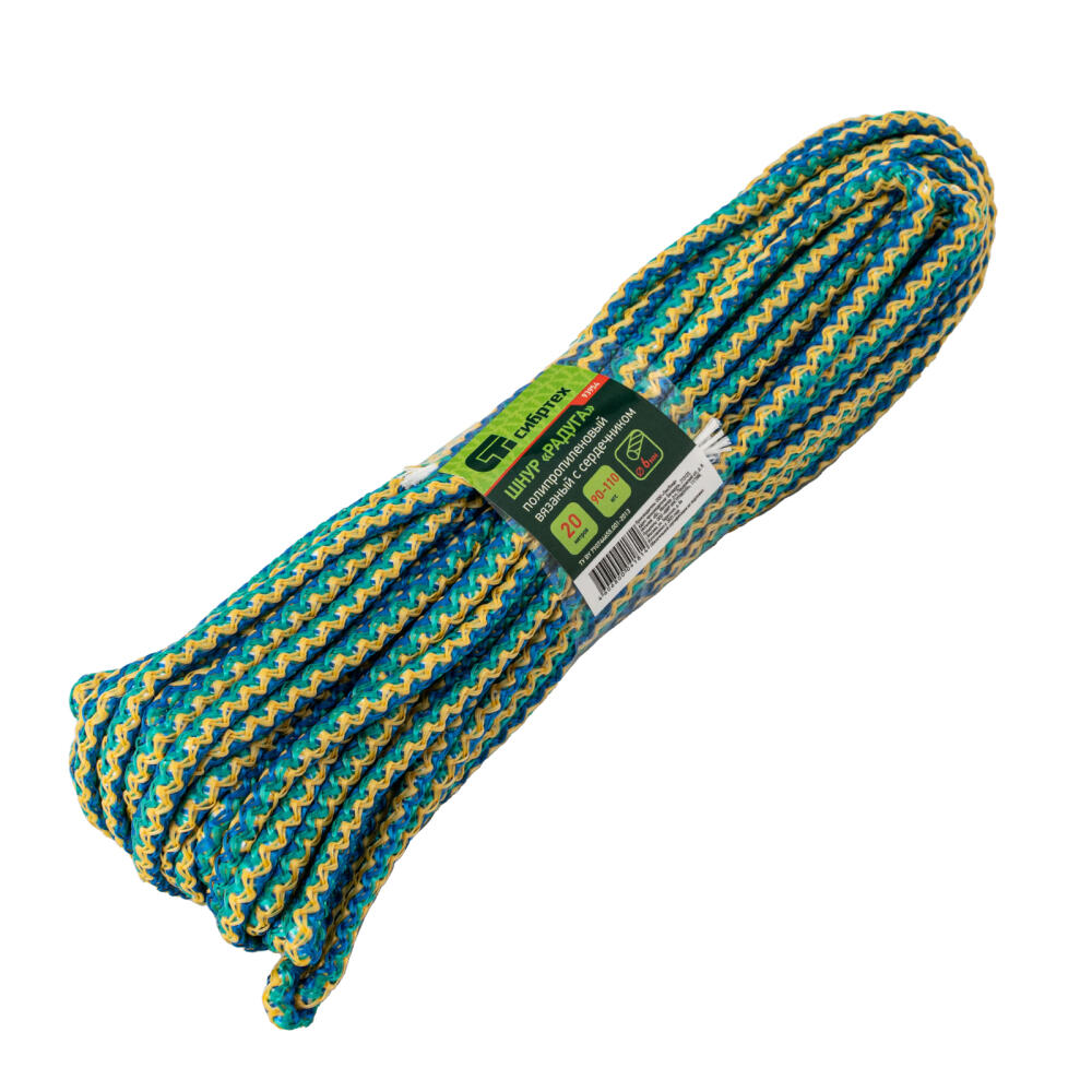 Вязаный полипропиленовый шнур с сердечником Сибртех «Радуга» 93954 белого цвета, диаметром 6 мм, длиной 20 м, будет полезен для хозяйственных нужд: сушки белья, связывания предметов, подвязки растений. Пригодится также в походе, на охоте или рыбалке. Благодаря сердечнику и высокопрочной оплетке обладает повышенной устойчивостью к истиранию и разрыву — максимальная разрывная нагрузка составляет 90 кгс. Шнур выдерживает значительный вес, не растягивается и не провисает.