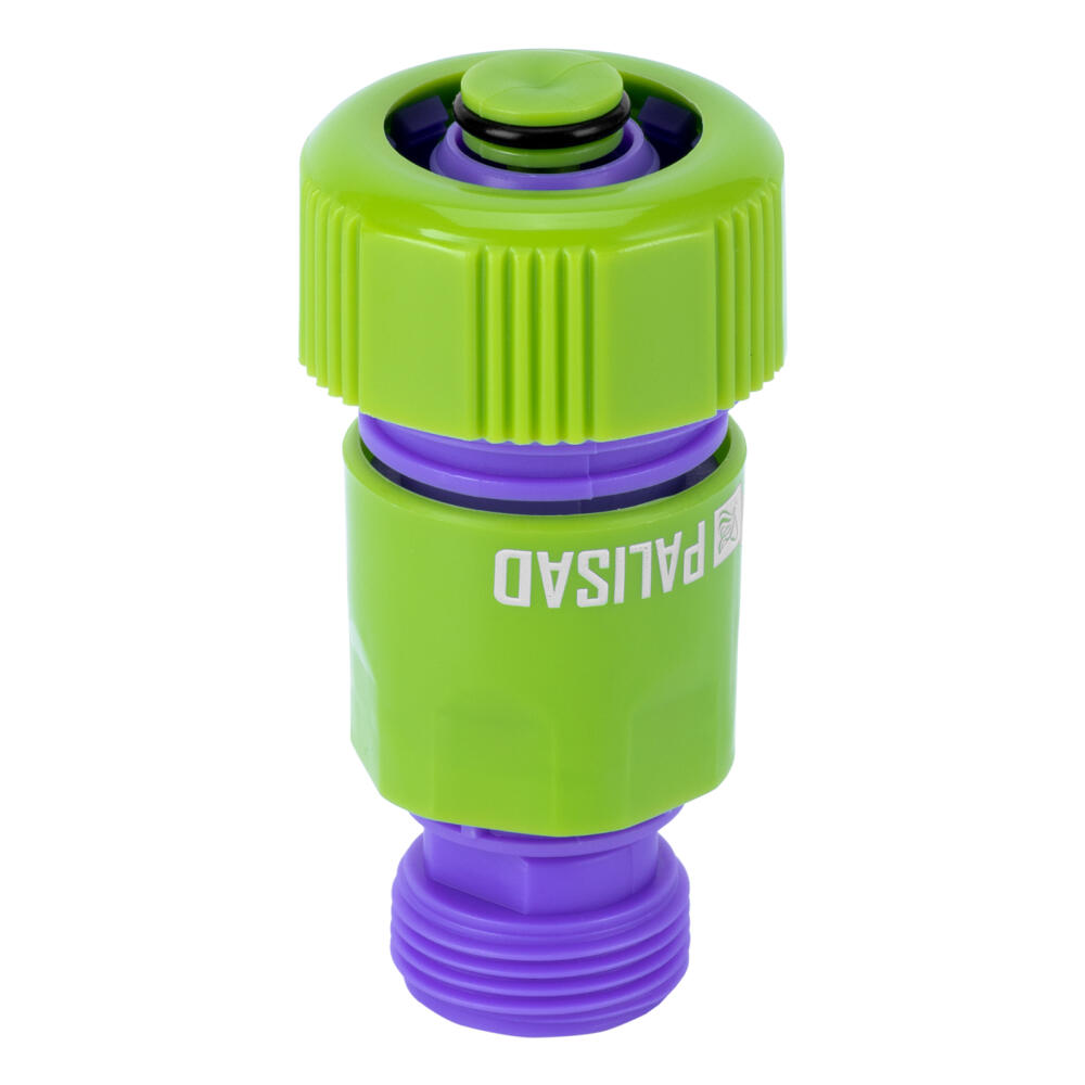 Пластмассовый соединитель-адаптер Palisad 65755 с внешней резьбой 3/4" соединяет источник водоснабжения, имеющий выход с внутренней резьбой соответствующего диаметра, и шланг диаметром 3/4". Имеет штуцер быстроразъемного соединения, что упрощает монтаж поливочной линии. Комплект пригодится для организации системы орошения на дачном участке.