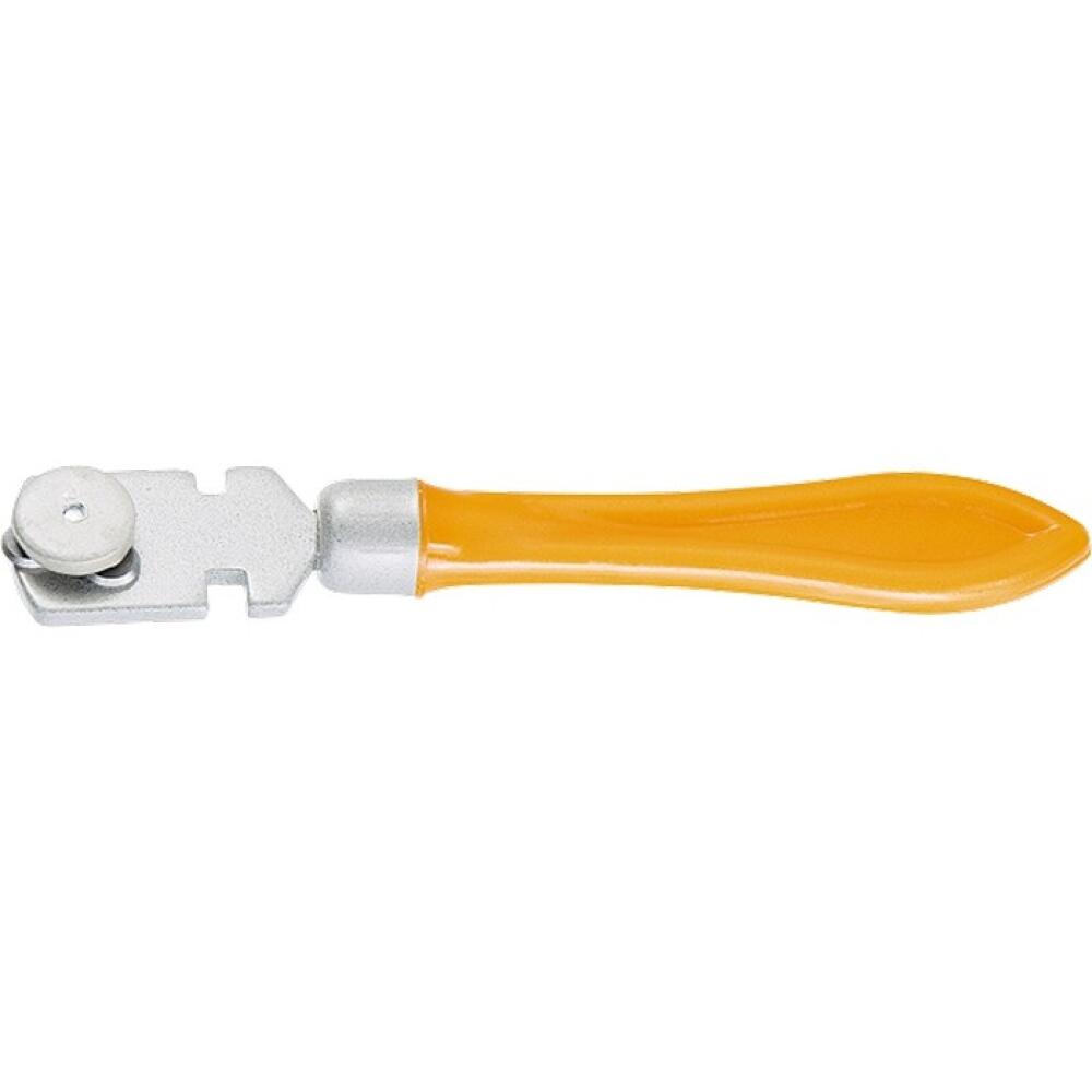 Трехроликовый стеклорез 87215 с пластмассовой рукояткой — инструмент для резки стекол и зеркал. Имеет легкую рукоятку из противоударной пластмассы, поэтому удобен в работе и долговечен. Подходит для работы со стеклами толщиной до 7 мм. Наличие 2 запасных роликов увеличивает ресурс инструмента. Стеклорез оптимален для бытового применения.