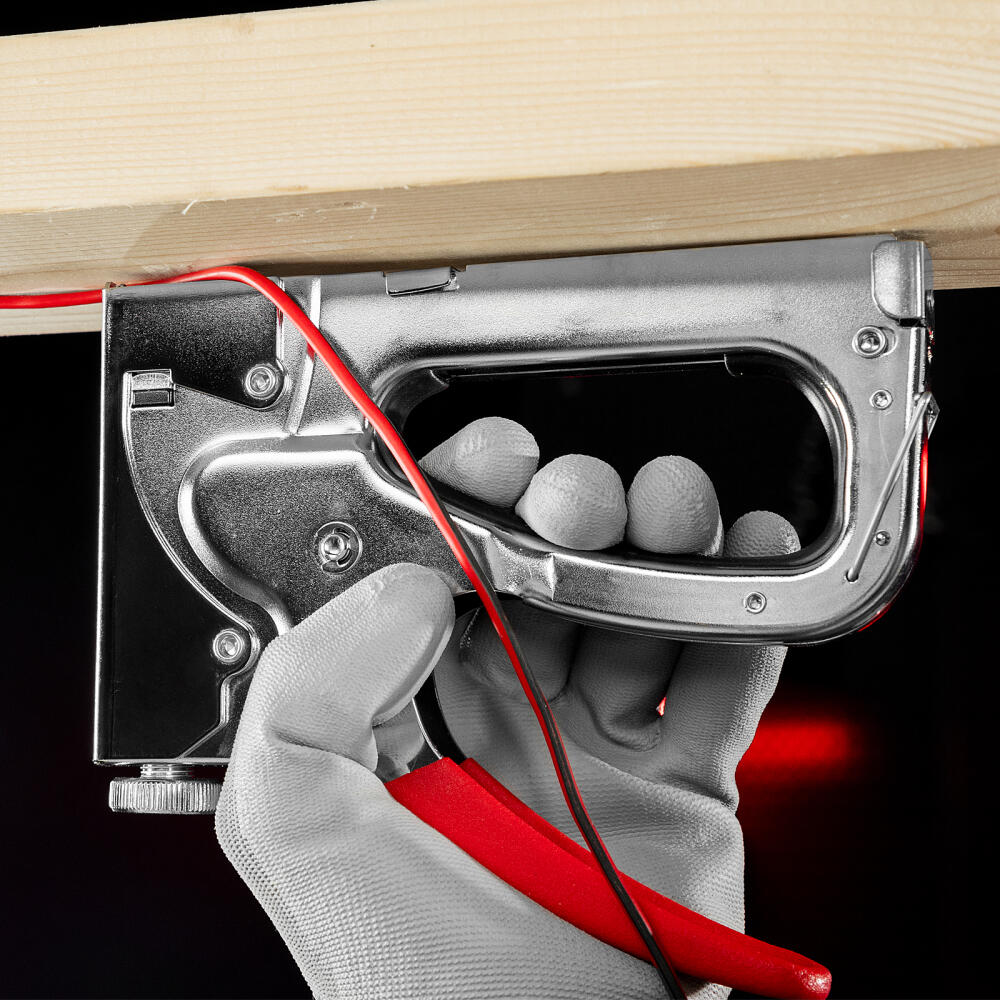 Мебельный 4-функциональный степлер Matrix 40901 имеет универсальный механизм, совместимый со скобами типов 140, 36, 300 и 500 размером 6-14 мм, поэтому его можно использовать не только для сборки и обивки мебели, но и для укладки ковровых покрытий, монтажа низковольтных кабелей, а также выполнения багетных работ. Инструмент применяется для закрепления фанеры, картона, ДВП, ДСП, пленки и утеплителя на деревянном основании. Штампованный стальной корпус устойчив к нагрузкам, поэтому степлер выдерживает интенсивное использование.
