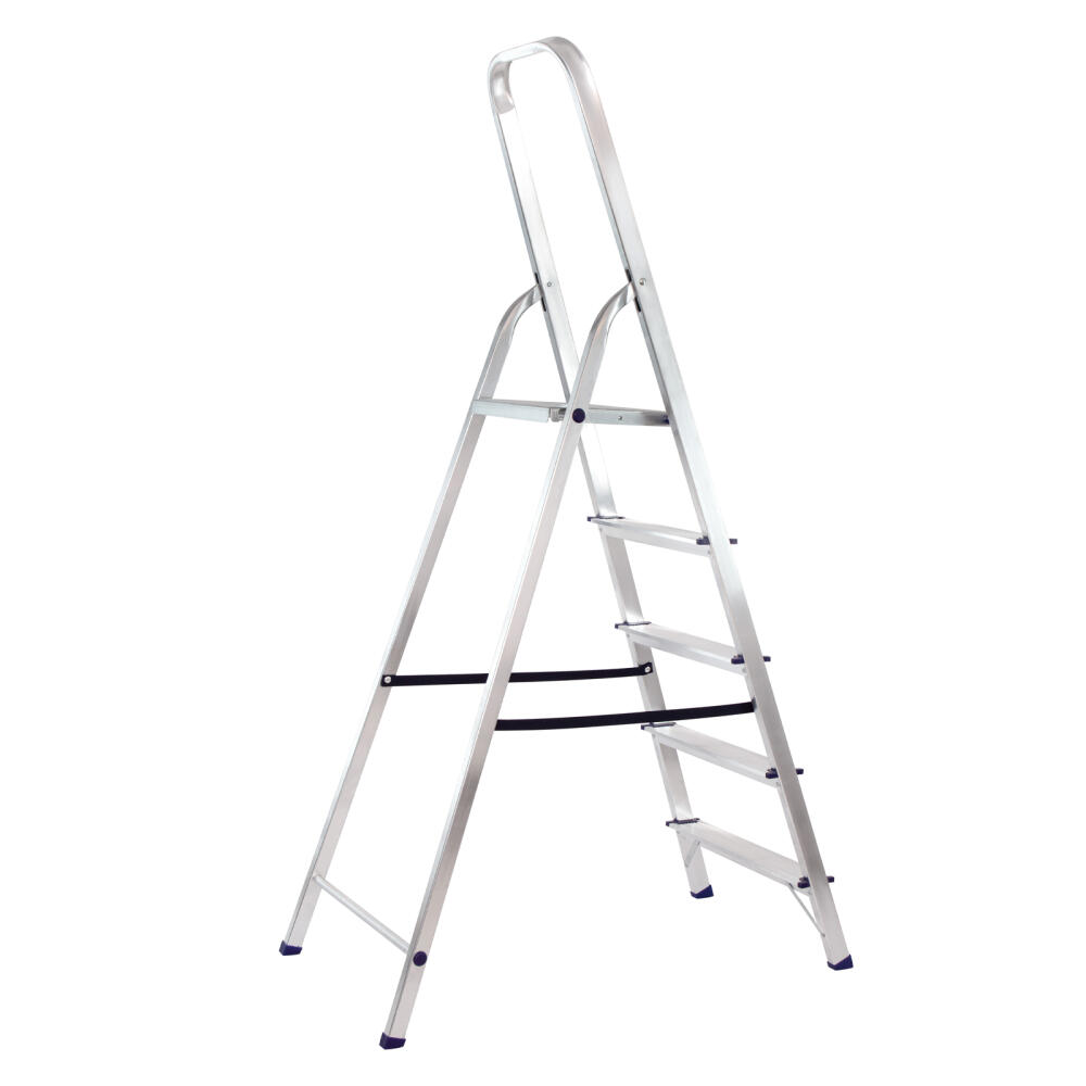 Стремянка алюминиевая Сибртех 97715 с 5 ступенями предназначена для выполнения работ на высоте, превышающей человеческий рост. Высокая дуга безопасности обеспечивает устойчивое положение пользователя. Площадка находится на высоте 102,1 см от опорной поверхности, рабочая высота стремянки составляет 302,1 см (при среднем росте пользователя 170 см). Стремянка пригодится во время строительных и ремонтных работ, позволит без лишних усилий повесить картину или шторы, покрасить стену, достать нужную вещь с антресолей или верхней полки шкафа, а также решить много других бытовых задач.