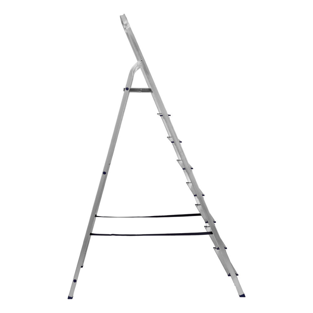 Стремянка алюминиевая Сибртех 97718 с 8 ступенями предназначена для выполнения работ на высоте, превышающей человеческий рост. Высокая дуга безопасности обеспечивает устойчивое положение пользователя. Площадка находится на высоте 165,7 см от опорной поверхности, рабочая высота стремянки составляет 365,7 см (при среднем росте пользователя 170 см). Стремянка пригодится во время строительных и ремонтных работ, будет полезна на даче или в гараже.