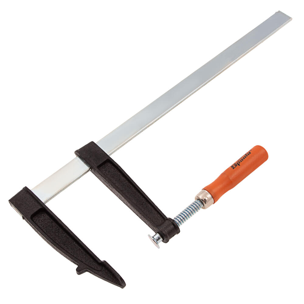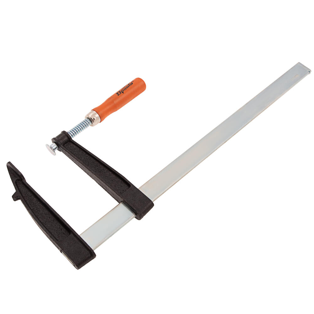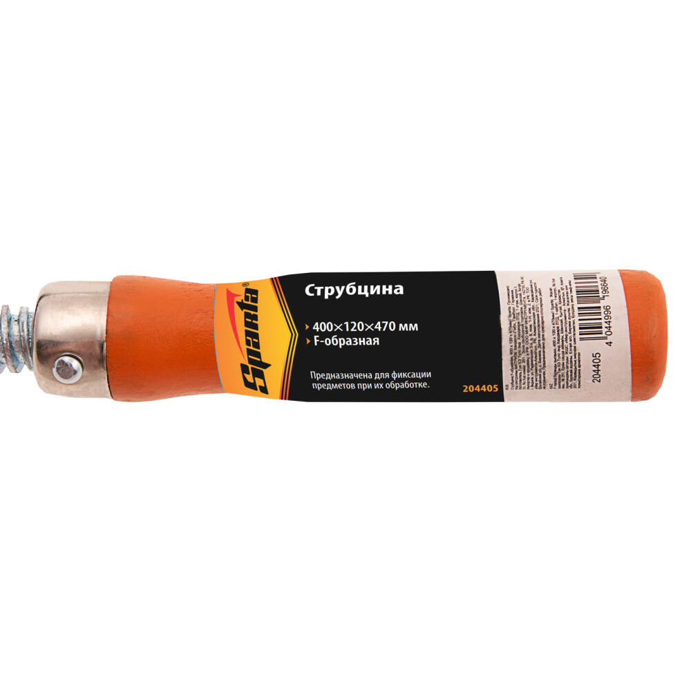 F-образная струбцина Sparta 204405, 400 х 120 х 470 мм, используется в столярном и слесарном деле и позволяет фиксировать заготовки из металла, древесины и других материалов для их соединения или обработки. Деталь помещают между губками, одна из которых подвижна и служит для регулировки величины захвата. Винтовой зажим позволяет прикладывать значительное усилие для надежной фиксации. Защитные накладки предотвращают повреждение детали. Элементы конструкции выдерживают высокую температуру, поэтому струбцина подходит для проведения сварочных работ, при этом пластиковые накладки необходимо снять.