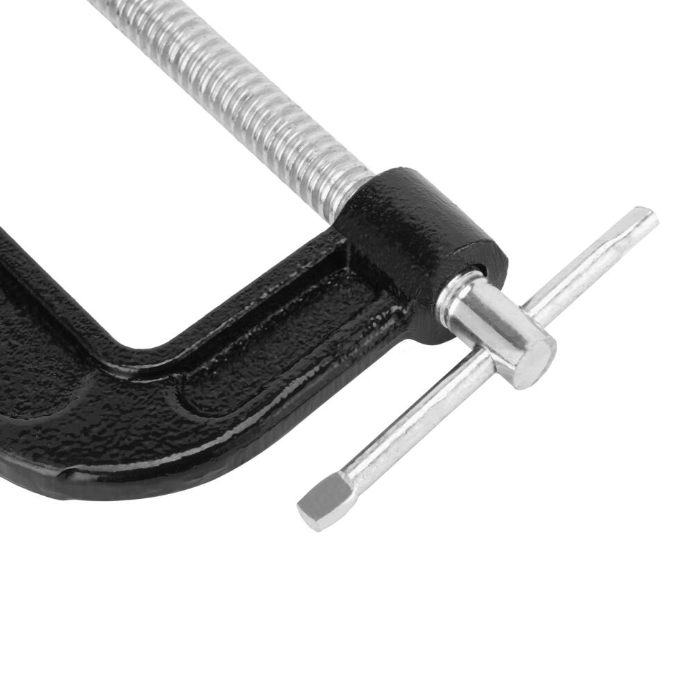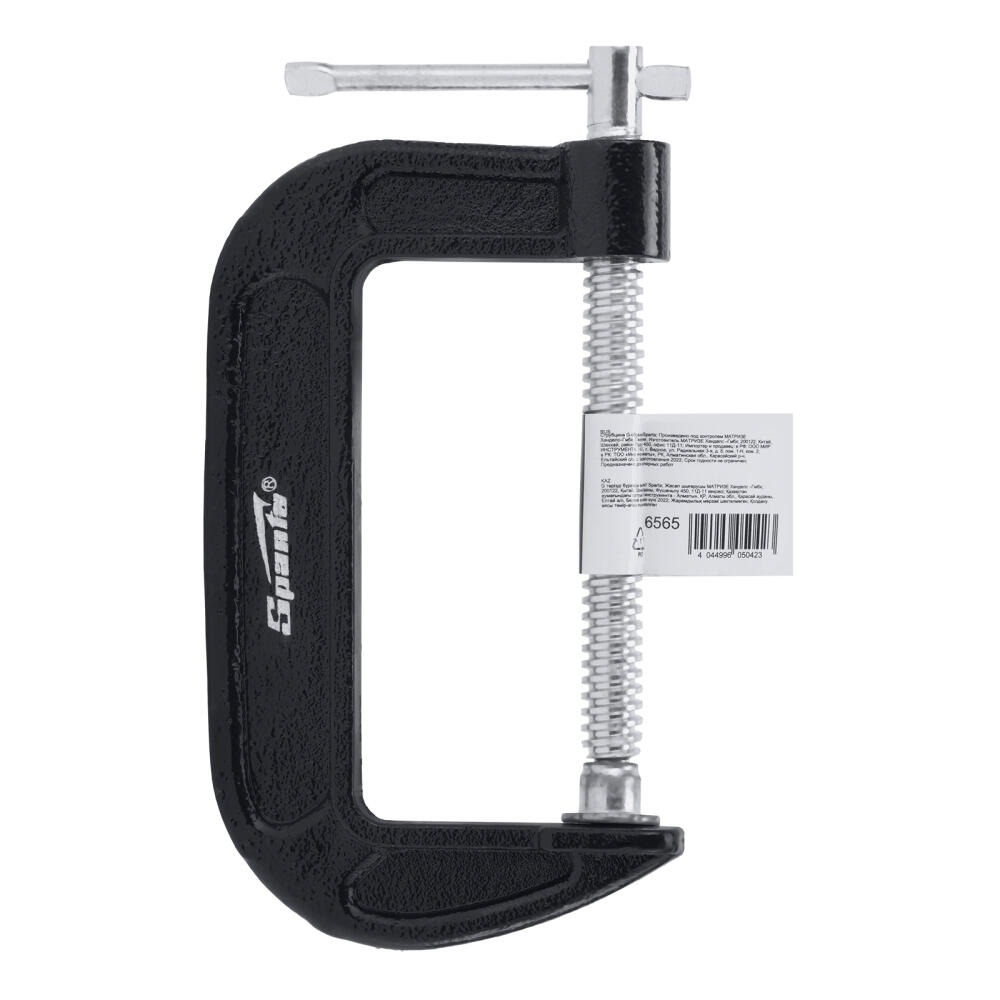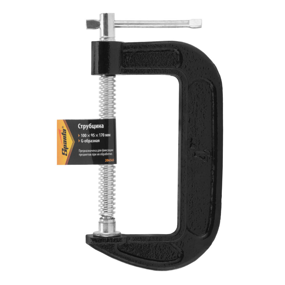G-образная струбцина Sparta 206565 с шириной зажима 100 мм надежно фиксирует различные детали для дальнейшего склеивания, сверления, пиления, шлифования или сварки. Винт с воротком и крупной червячной резьбой позволяет зажимать детали плавно и со значительным усилием. Струбцина будет полезна домашнему мастеру.