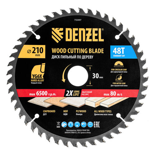 Пильный диск по дереву ф210 х 30 мм, 48 зубьев Denzel