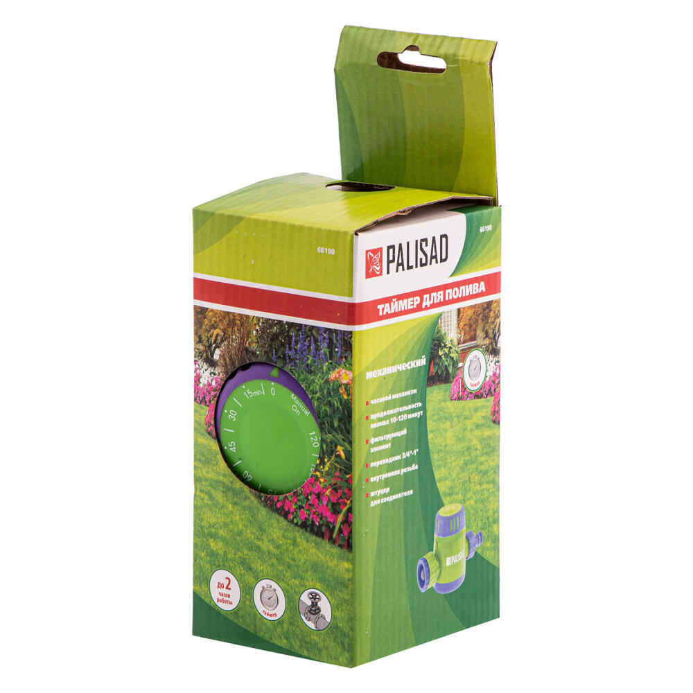 Механический таймер Palisad 66190 используется для автоматического отключения полива в промежутке от 10 минут до 2 часов. Он пригодится дачникам для организации ухода за растениями на участке без необходимости постоянного контроля полива. Также он позволяет рассчитывать расход воды для ее экономии.