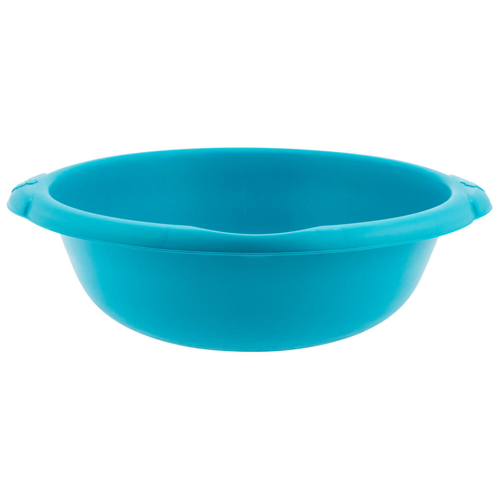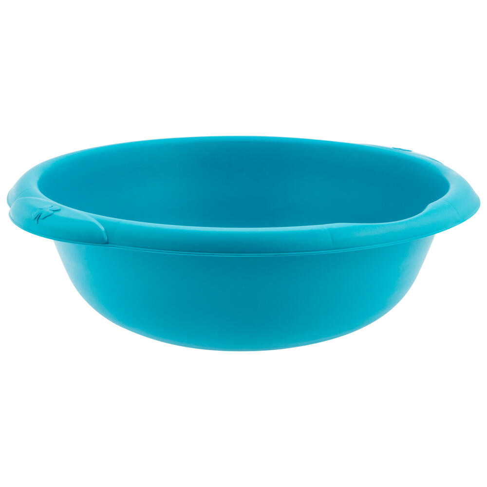 Пластмассовый круглый таз Palisad Home 929865 бирюзового цвета, объемом 18 л, применяется в быту. Его можно использовать для хранения и переноски плодов, ягод, грунта, сыпучих материалов, а также для влажной уборки, приготовления различных растворов и замачивания белья.