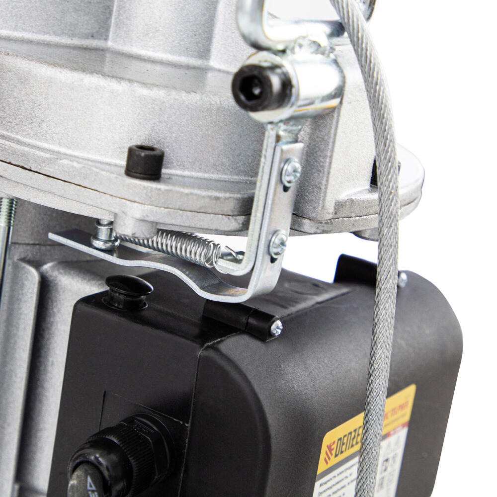 Электрический тельфер Denzel TF-1000 52016 мощностью 1600 Вт способен поднимать автомобильные двигатели, строительные материалы и другие грузы массой до 0,5 т напрямую и до 1 т с помощью блока полиспаста. Высота подъема составляет 6 м при использовании полиспаста и 12 м без него, скорость — 4 и 8 м/мин соответственно. Устройство пригодится в гараже, автомастерской или на строительной площадке. Полиспаст входит в комплект поставки.