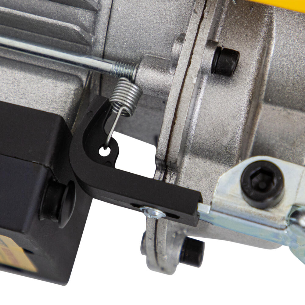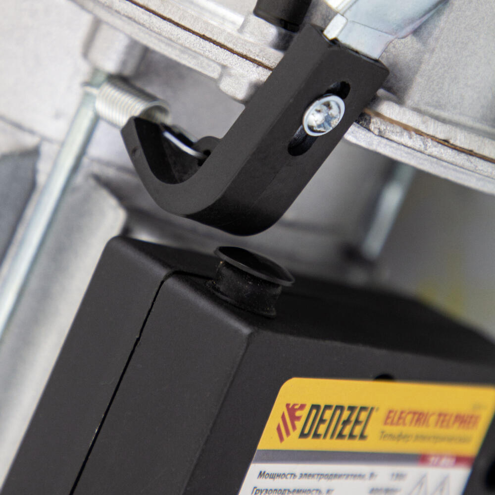 Электрический тельфер Denzel TF-800 52014 мощностью 1300 Вт способен поднимать автомобильные двигатели, строительные материалы и другие грузы массой до 0,4 т напрямую и до 0,8 т с помощью блока полиспаста. Высота подъема составляет 6 м при использовании полиспаста и 12 м без него, скорость — 4 и 8 м/мин соответственно. Устройство пригодится в гараже, автомастерской или на строительной площадке. Полиспаст входит в комплект поставки.
