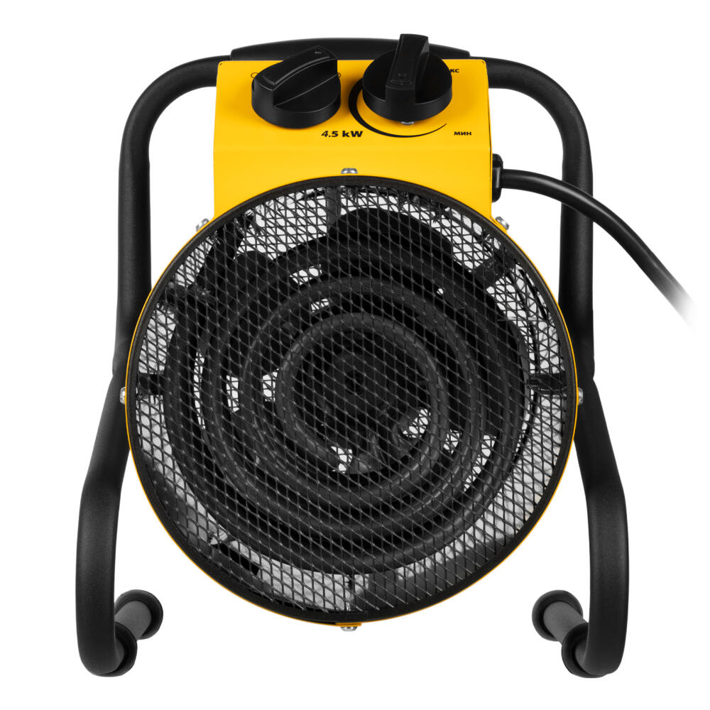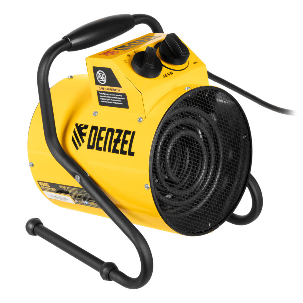 Тепловая пушка профессиональной серии Denzel SFH-5000 96438 питается от сети 230 В и генерирует воздушный поток мощностью 260 м³/ч. Работает в одном из 3 режимов: вентилятор, обогрев на мощности 2250 и обогрев на мощности 4500 Вт. Используется в складских, производственных, общественных помещениях площадью до 45 м². Подходит для дистанционной просушки поверхностей, например, окрашенных или оштукатуренных стен во время отделочных работ.