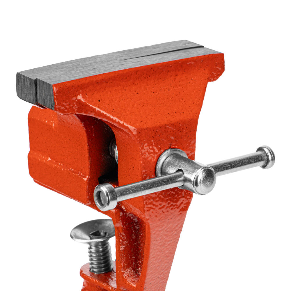 Тиски Sparta 185095 с губками шириной 60 мм и креплением для стола позволяют надежно зафиксировать небольшие деревянные детали. Пригодятся во время столярных и слесарных работ в мастерской или гараже. Рабочий ход губок составляет 35 мм, что позволяет зажимать и удерживать небольшие предметы.