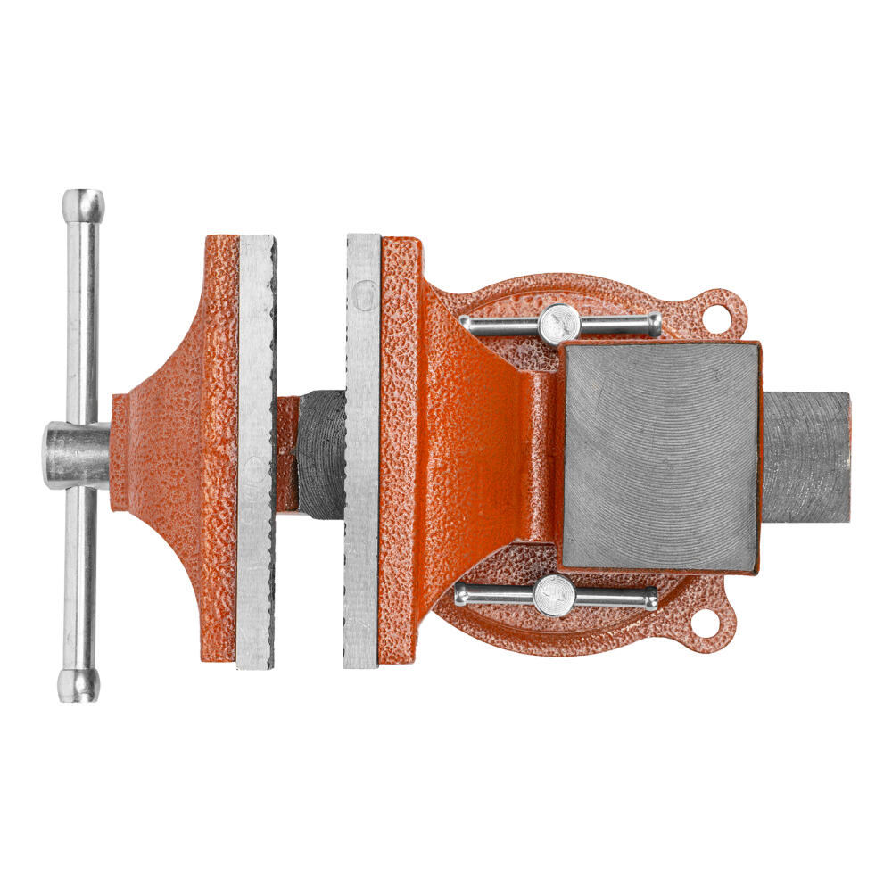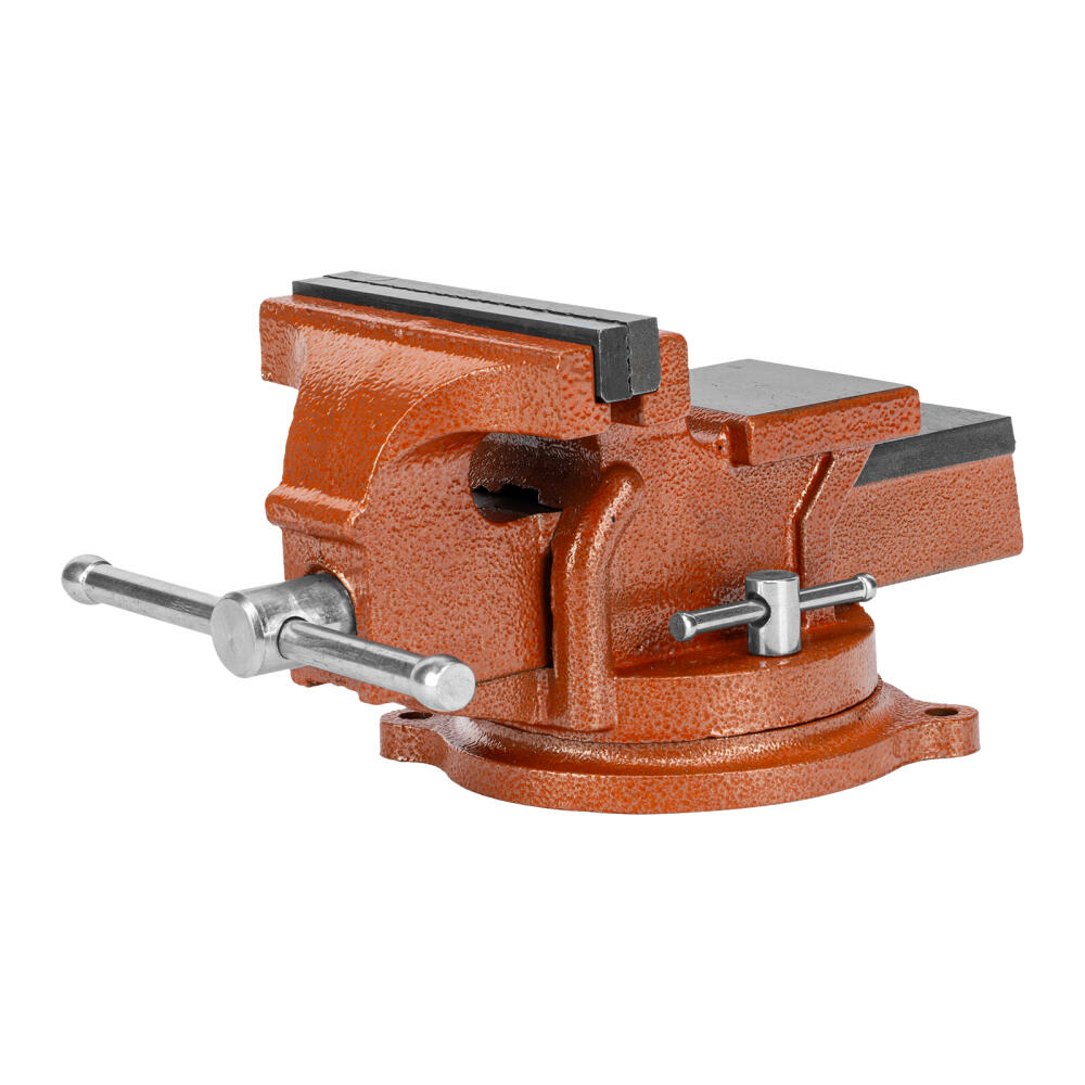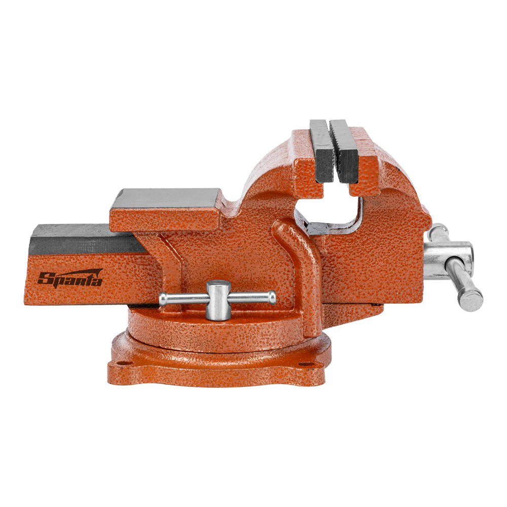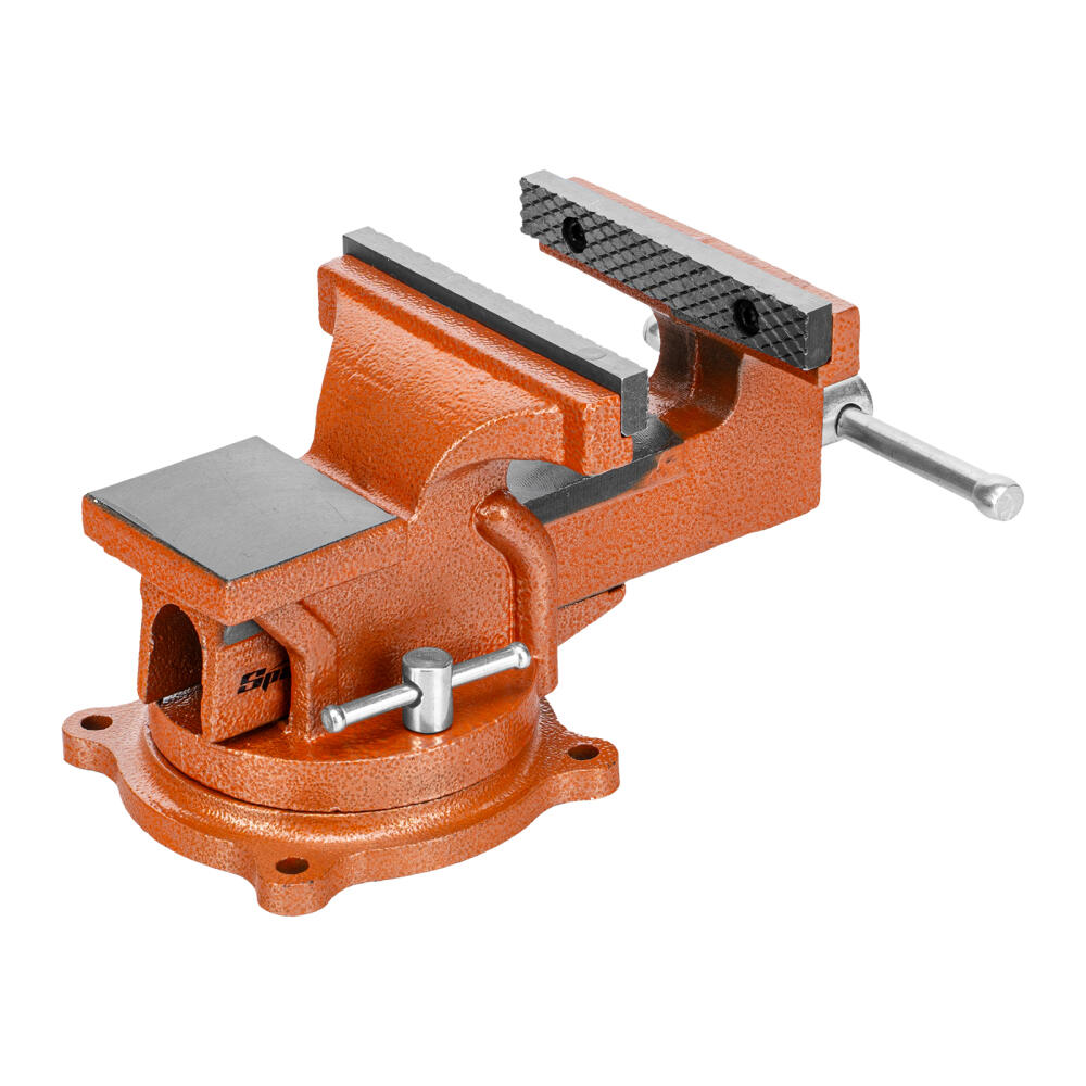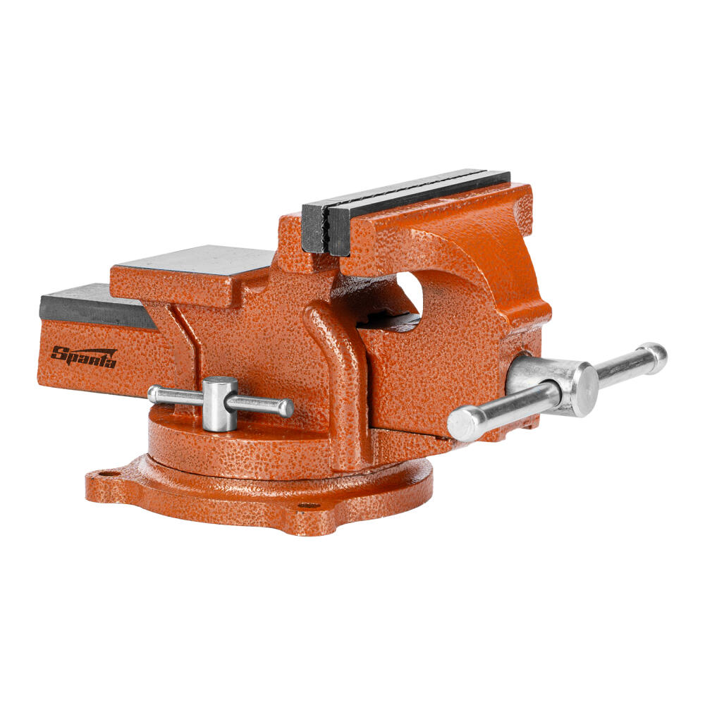 Поворотные слесарные тиски Sparta 186255 с наковальней, ширина губок 125 мм, — это небольшой инструмент для захвата деталей до 75 мм. Будут полезны в частной мастерской или гараже для удобства обработки малогабаритных заготовок.