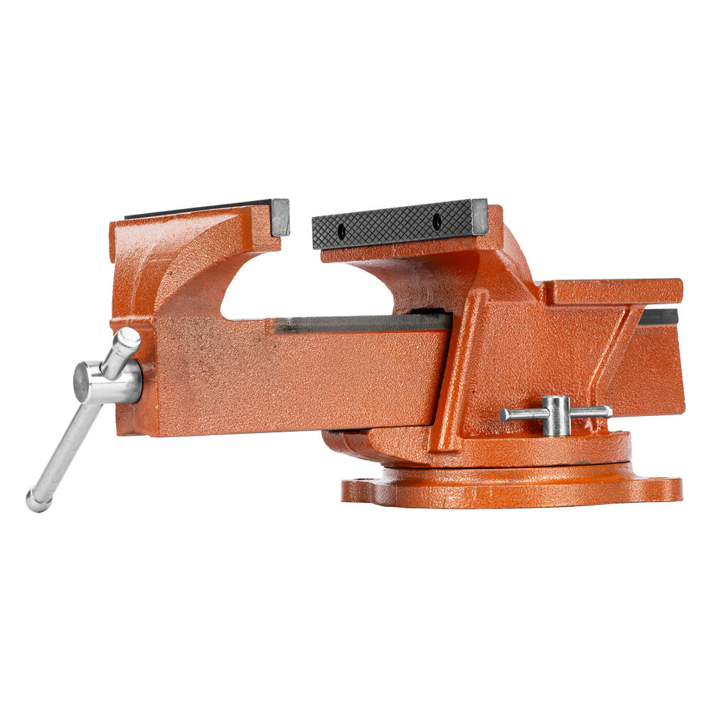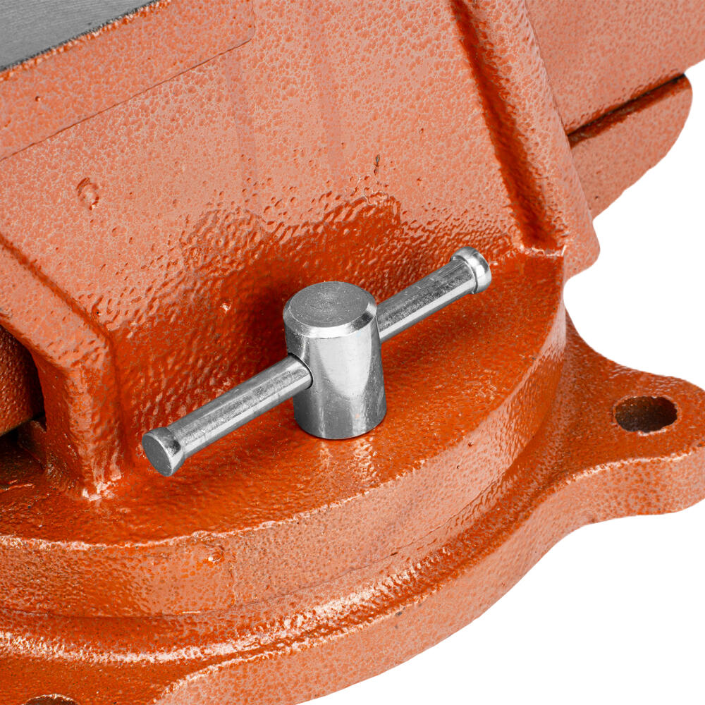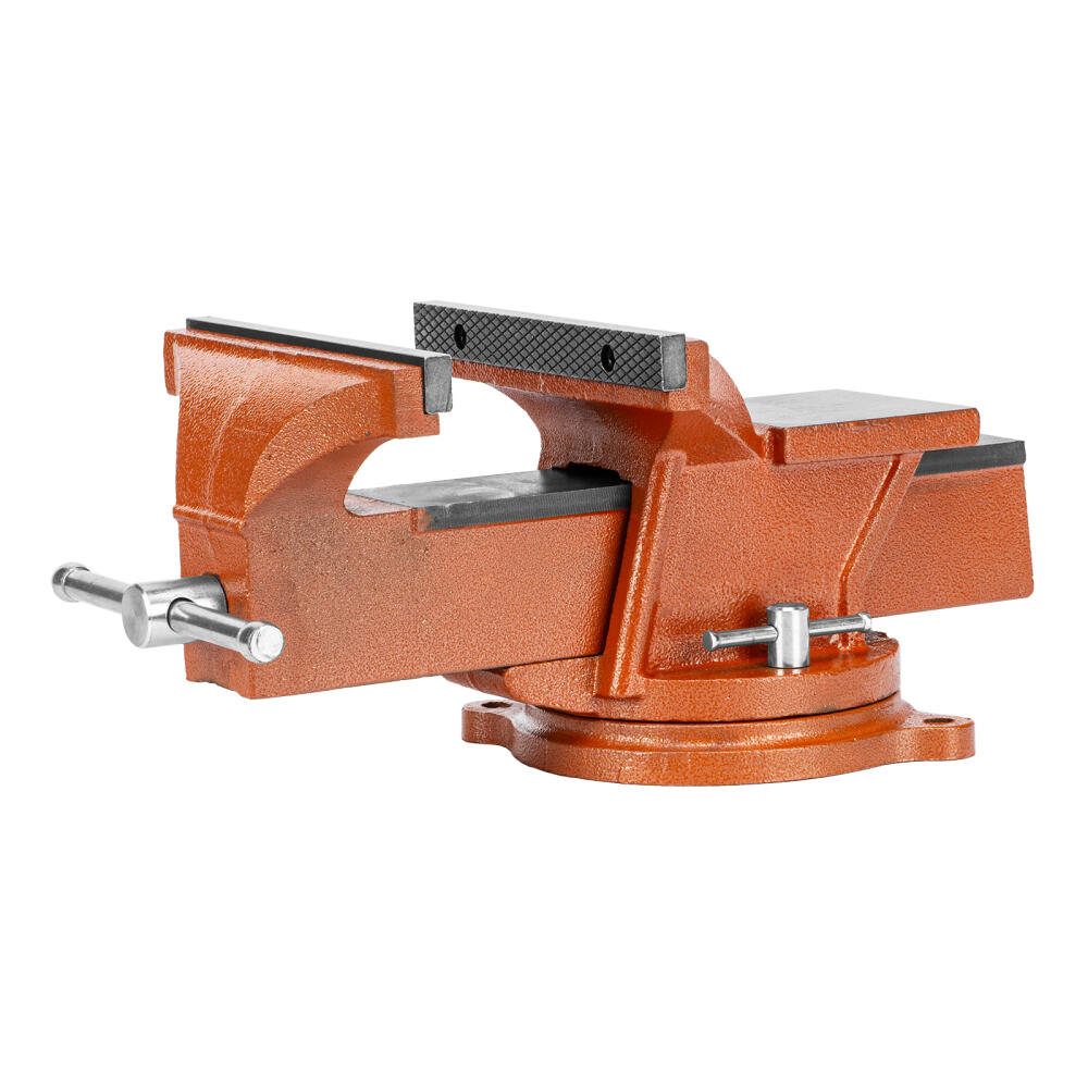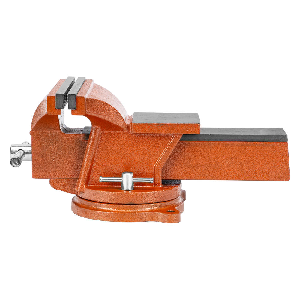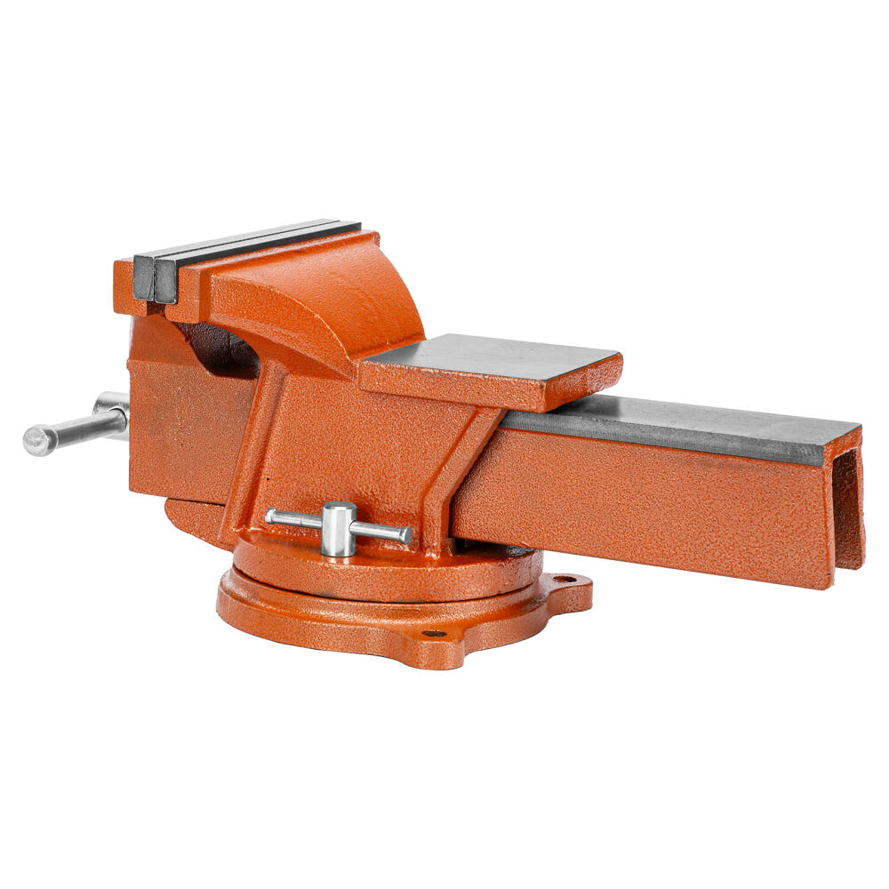 Поворотные слесарные тиски Sparta 186295 с наковальней, ширина губок 200 мм, — это небольшой инструмент для захвата деталей до 150 мм. Будут полезны в частной мастерской или гараже для удобства обработки крупногабаритных заготовок.