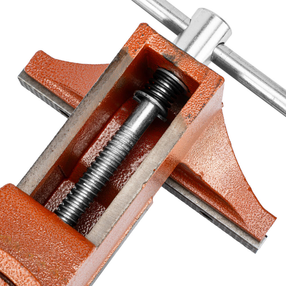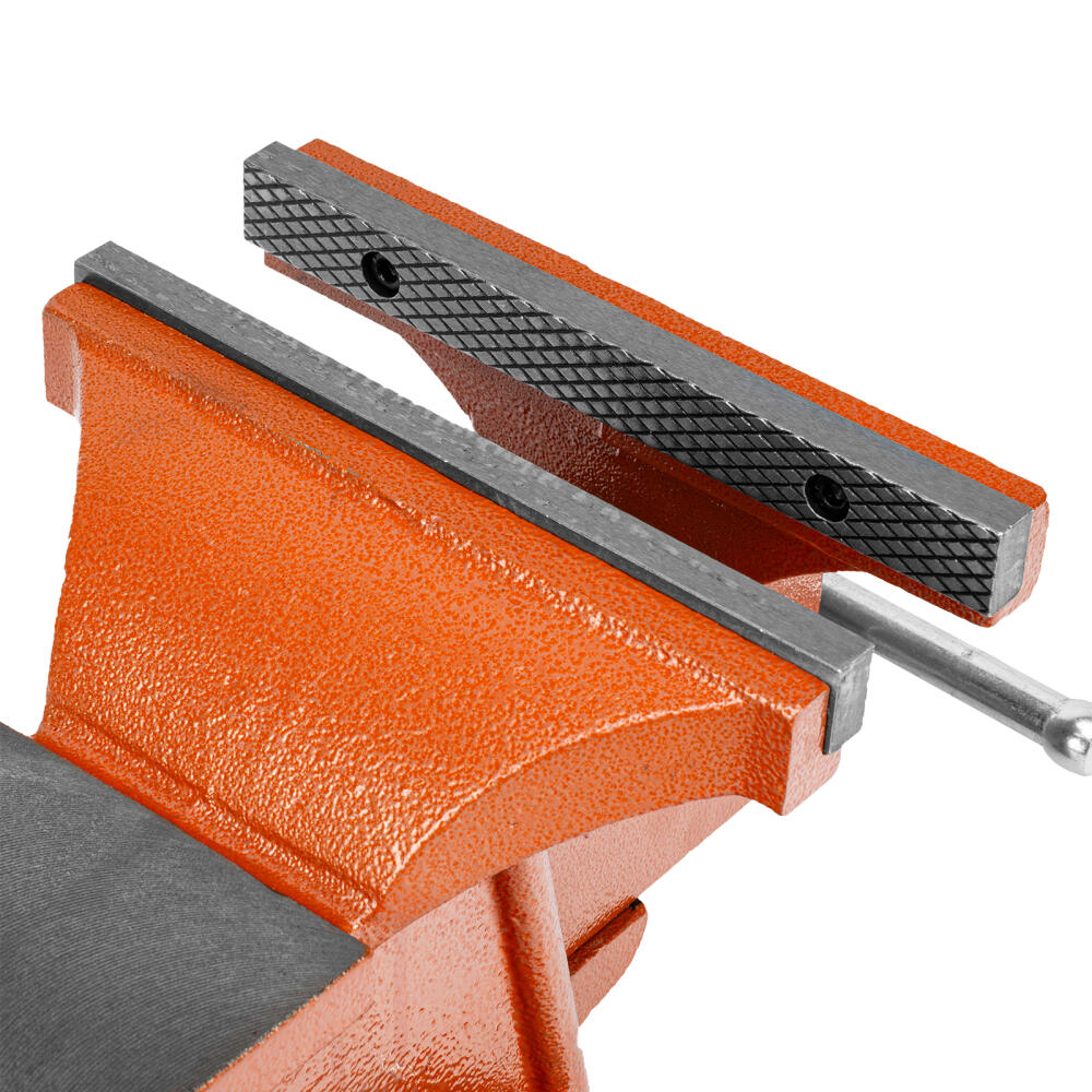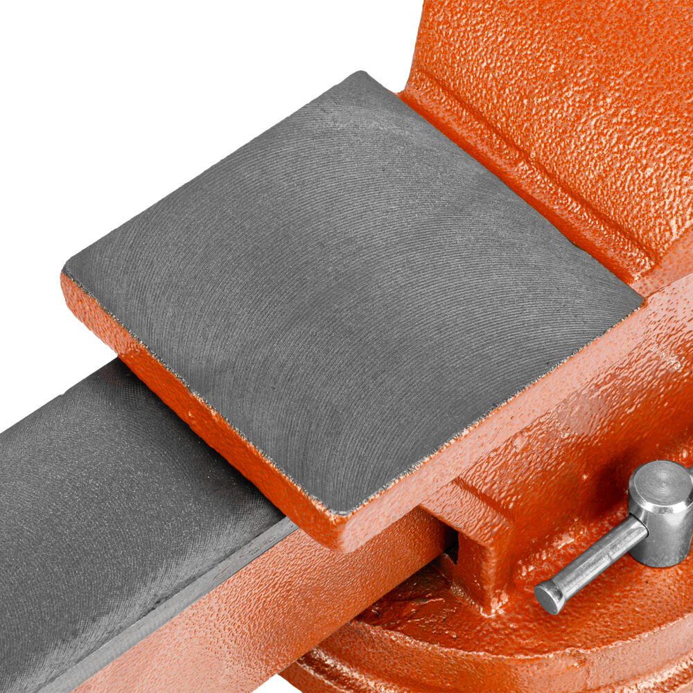 • Корпус тисков выполнен из чугуна, а губки — из стали, благодаря чему достигается высокая прочность инструмента.