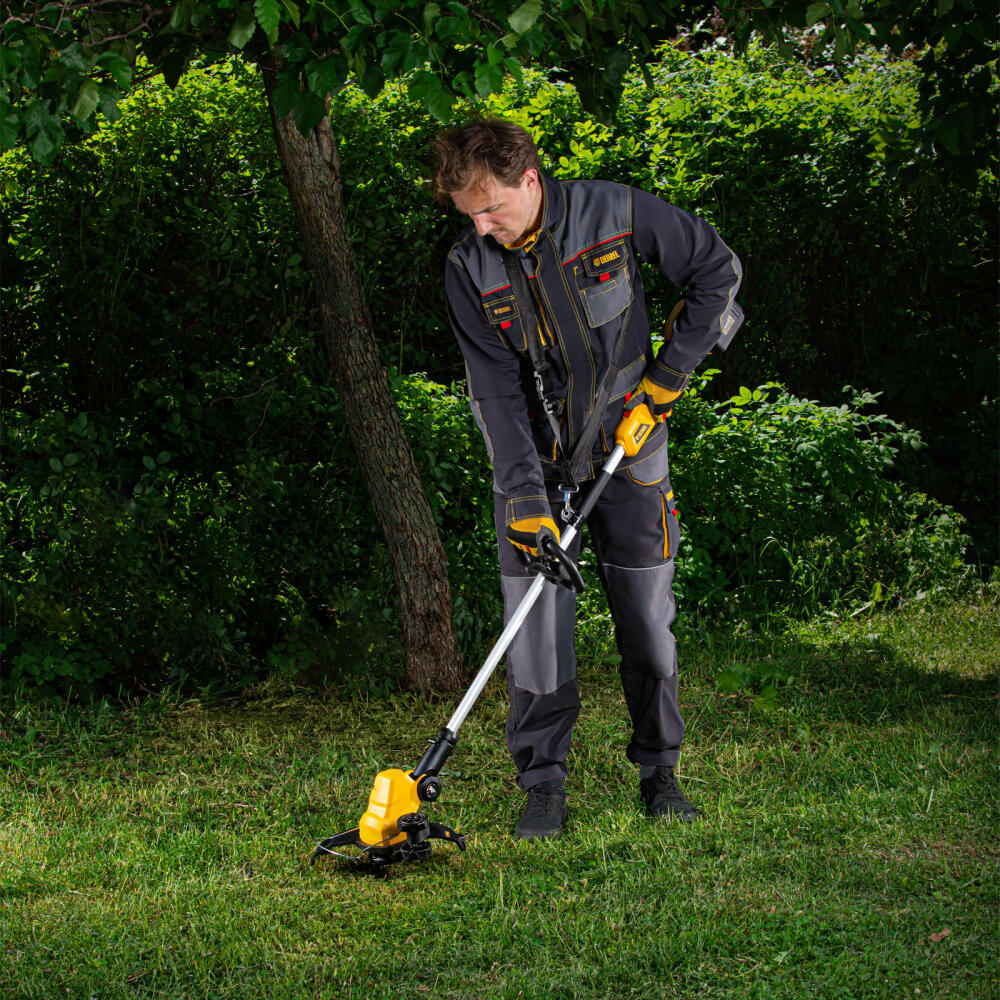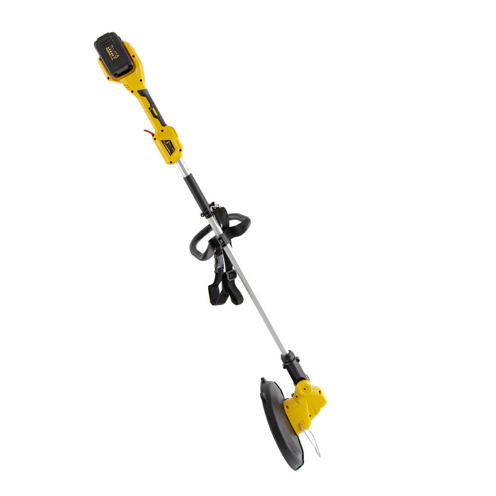 Триммер аккумуляторный Denzel RT300-36 58710 работает от батареи Li-Ion напряжением 36 В и емкостью 4 А·ч, обеспечивая ширину скашивания 300 мм. Предназначен для скашивания свежей травы, обработки границ газона, удаления растительности на небольших приусадебных участках. Выполняет поставленные задачи с помощью лески, совмещая функции триммера и кромкореза. Поворотная голова с расположенным в ней электродвигателем обеспечивает комфортную эксплуатацию в самых труднодоступных местах.,Триммер не требует использования топлива и подключения к сети электроснабжения. Он комплектуется двумя аккумуляторными батареями увеличенной емкости с интеллектуальной системой распознавания типа нагрузки.