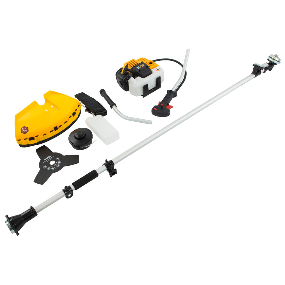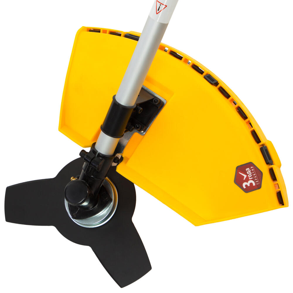Бензиновый триммер Denzel DT-25 96221 оснащен экономичным, надежным и простым в эксплуатации двигателем мощностью 1,3 л. и объемом 25 см³, имеет неразъемную штангу и поставляется комплектом из 2 частей. Оптимален для скашивания травы всех типов, в том числе газонной и с жесткими древовидными стеблями (полыни, крапивы, лебеды, борщевика), а также срезания кустарника и молодых побегов деревьев с диаметром стволов до 10 мм. Эффективно скашивает траву в труднодоступных местах: вдоль кромок дорожек, стен строений и вокруг деревьев. В комплекте катушка с леской и пильный диск, ширина скашивания составляет 420 мм и 255 мм соответственно.