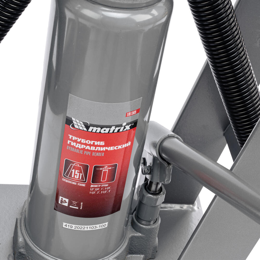 Гидравлический трубогиб Matrix 181365 в комплекте с башмаками 1/2"–3" позволяет мастеру прикладывать усилие до 15 т. Гидравлическая система позволяет сгибать детали в холодном состоянии под углом до 90° без особых усилий. После гибки трубы не теряют пропускной способности, поэтому подходят для любых систем, в том числе и с высоким давлением. Трубогиб пригодится на строительной площадке, в автомастерской, на производстве.